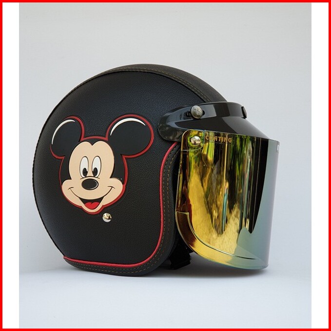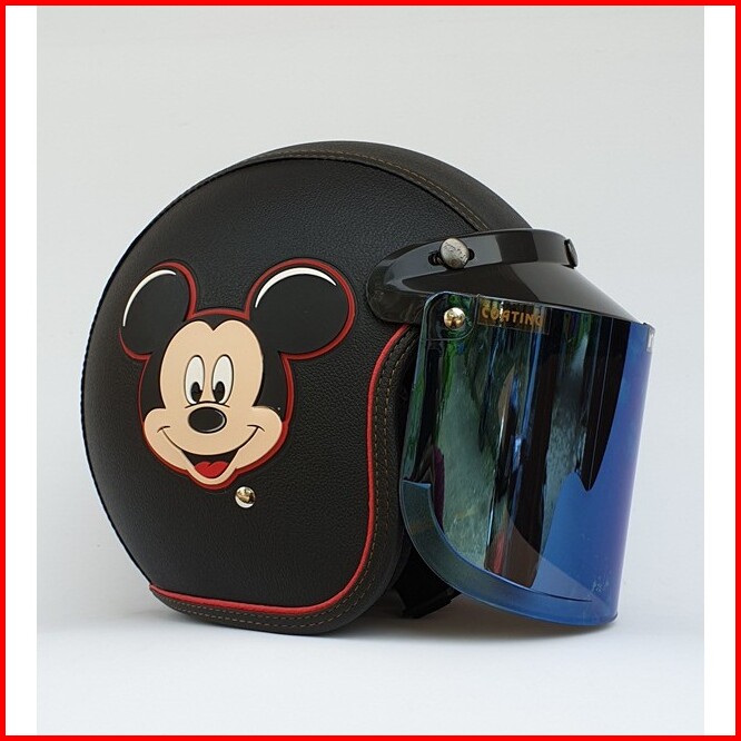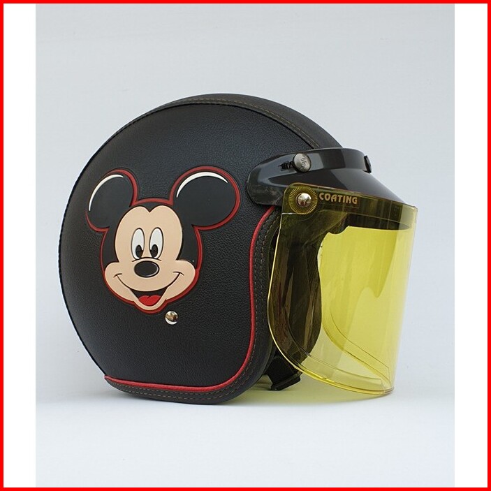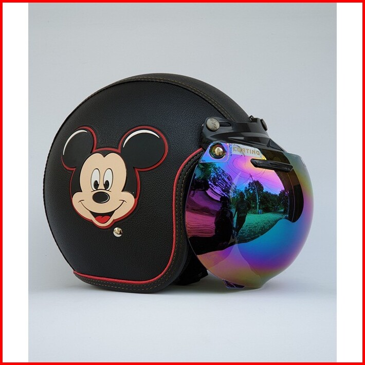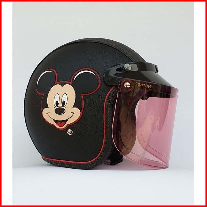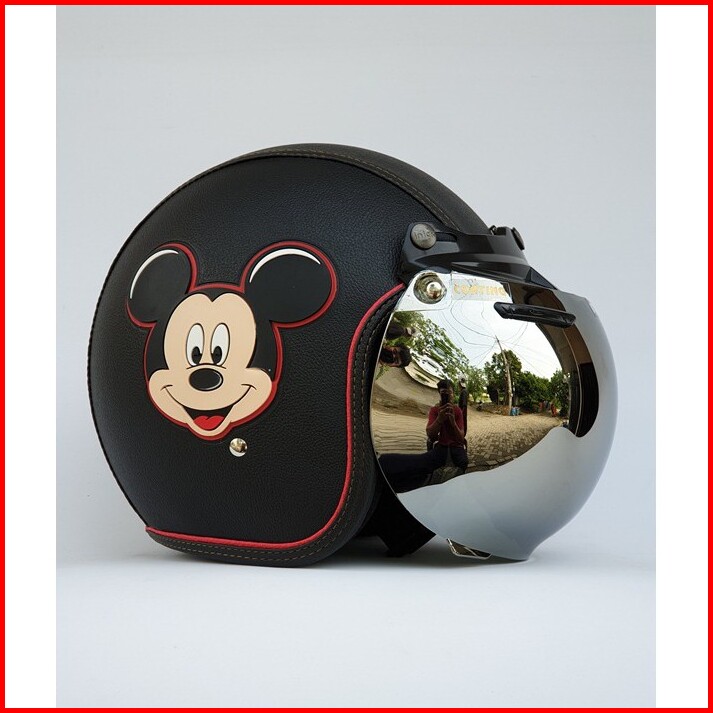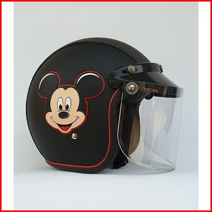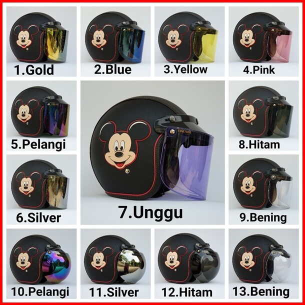 Helm Bogo Wanita Pria Cewek Cowok Dewasa Ful Leher Mikimose Warna Hitam Kekinian Kaca Datar Cembung