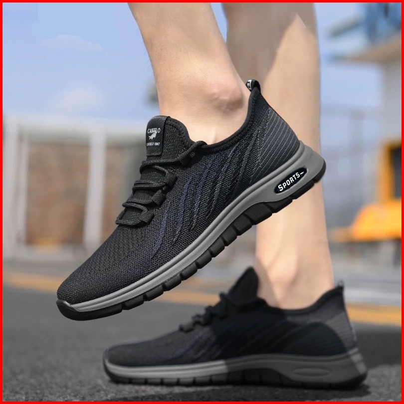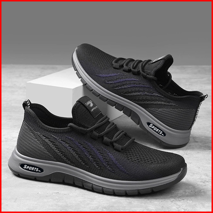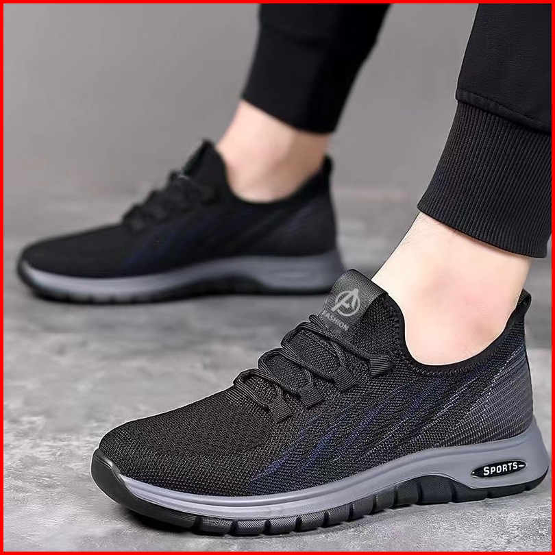 Highland Sepatu Sneakers Pria Casual Sepatu Olahraga Kasual Cowok Kerja Sepatu Hitam Sport Mr171