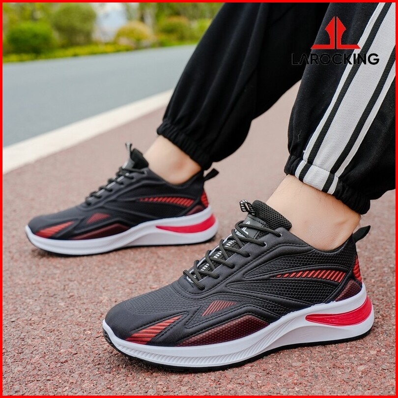 Larocking - Vega Hitam Merah Sepatu Sneakers Running Gym Shoes