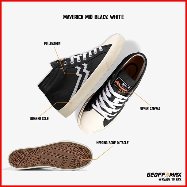 Geoff Max - Maverick Mid Black White Sepatu Pria Wanita Sneakers Casual Sekolah Kuliah