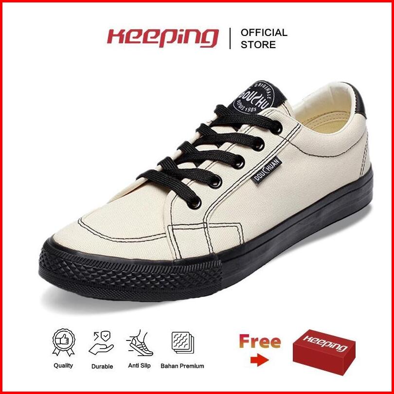 Keeping Sepatu Sneakers Pria Putih Sepatu Pria Kanvas Casual Outdoor Travelling Kerja Kuliah Ksc401