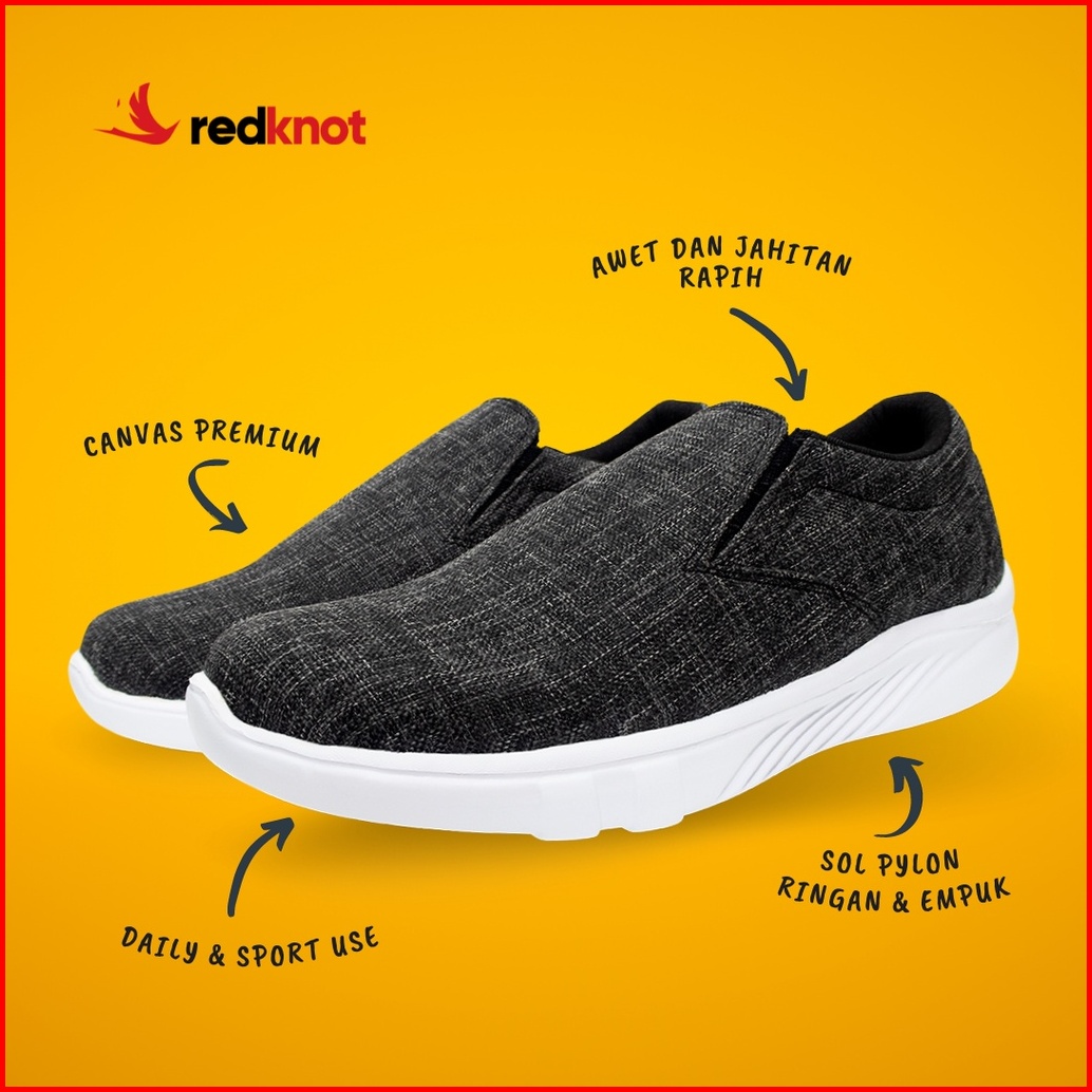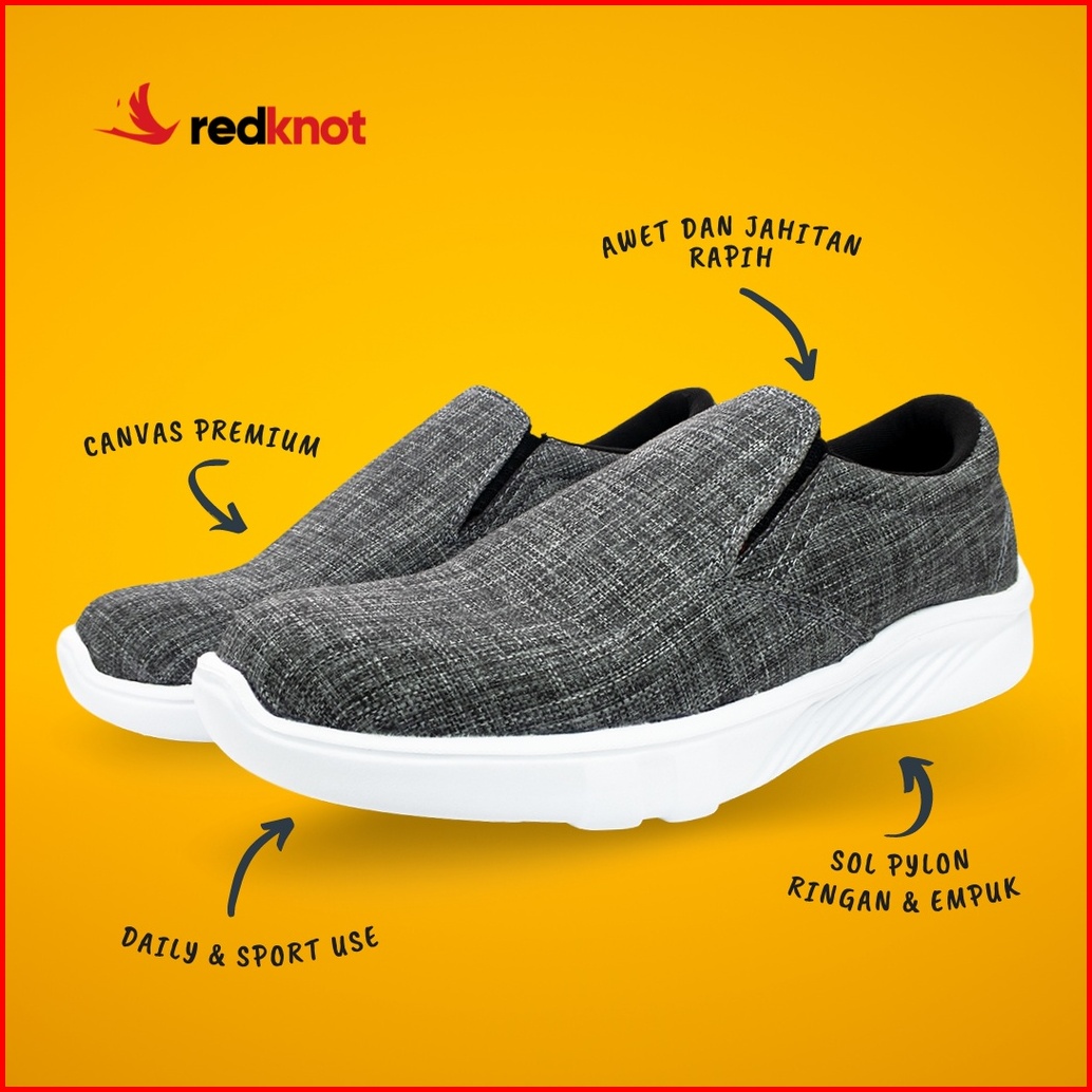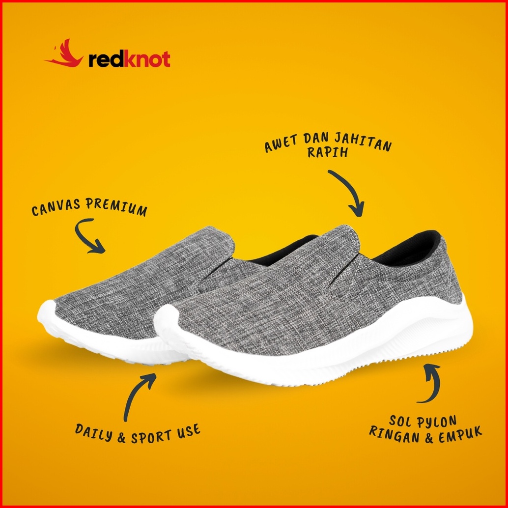 Redknot Miter Abu Abu - Sepatu Sneakers Slip On Tanpa Tali Gowes Olahraga Santai