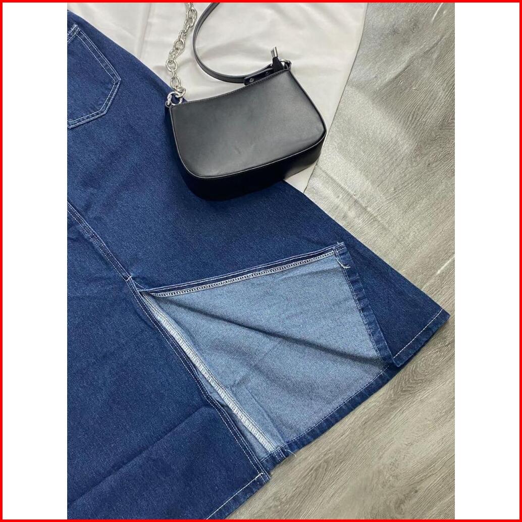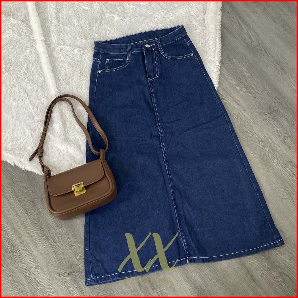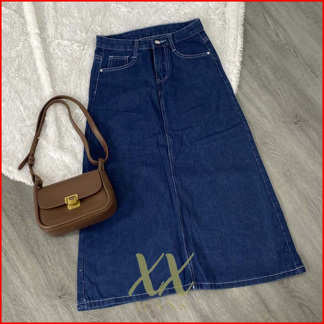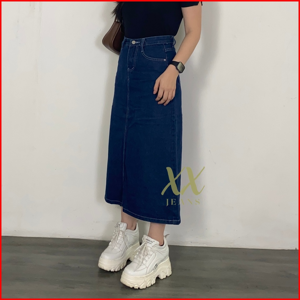 D10 - Rok Jeans Panjang High Waist Wanita Korean Style Skinny Import Premium Quality Polos Biru Tua