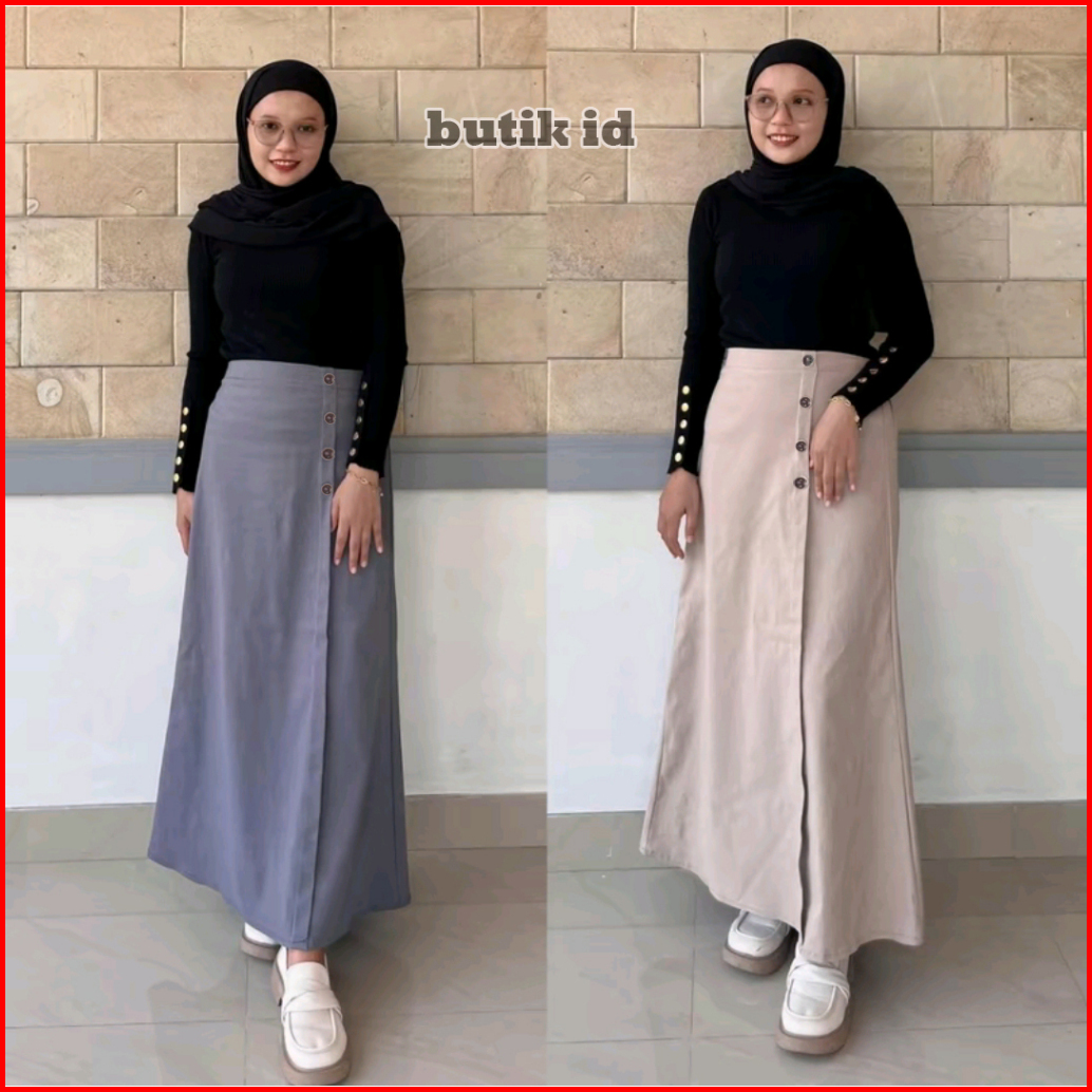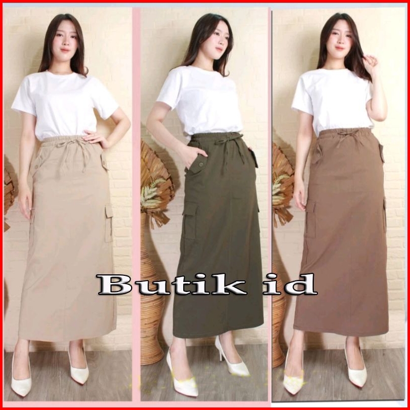 Rok Korean Style - Skirt Wanita Rok A Line Luna Cargo Panjang Wanita Twill Combed Street Tebal