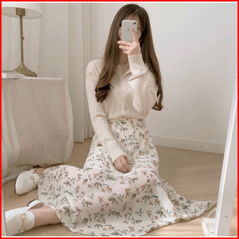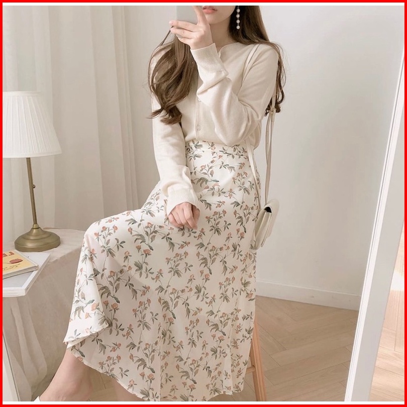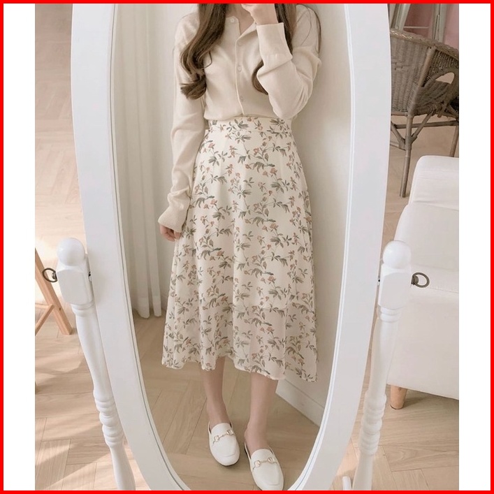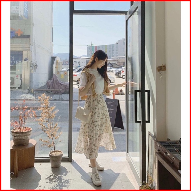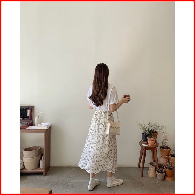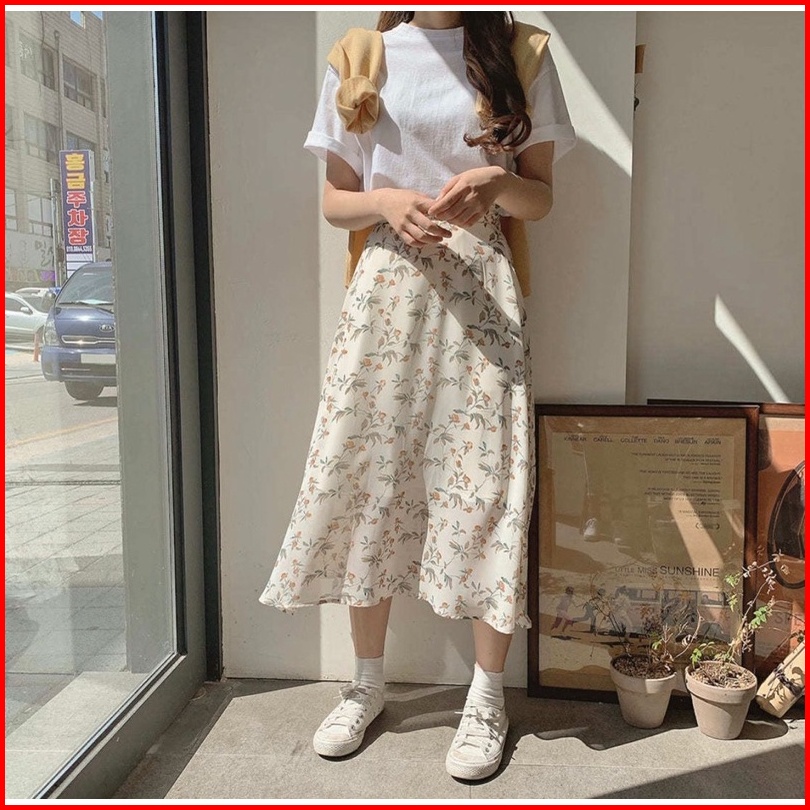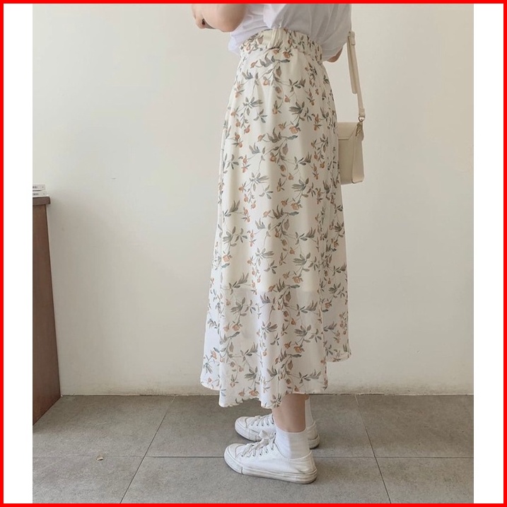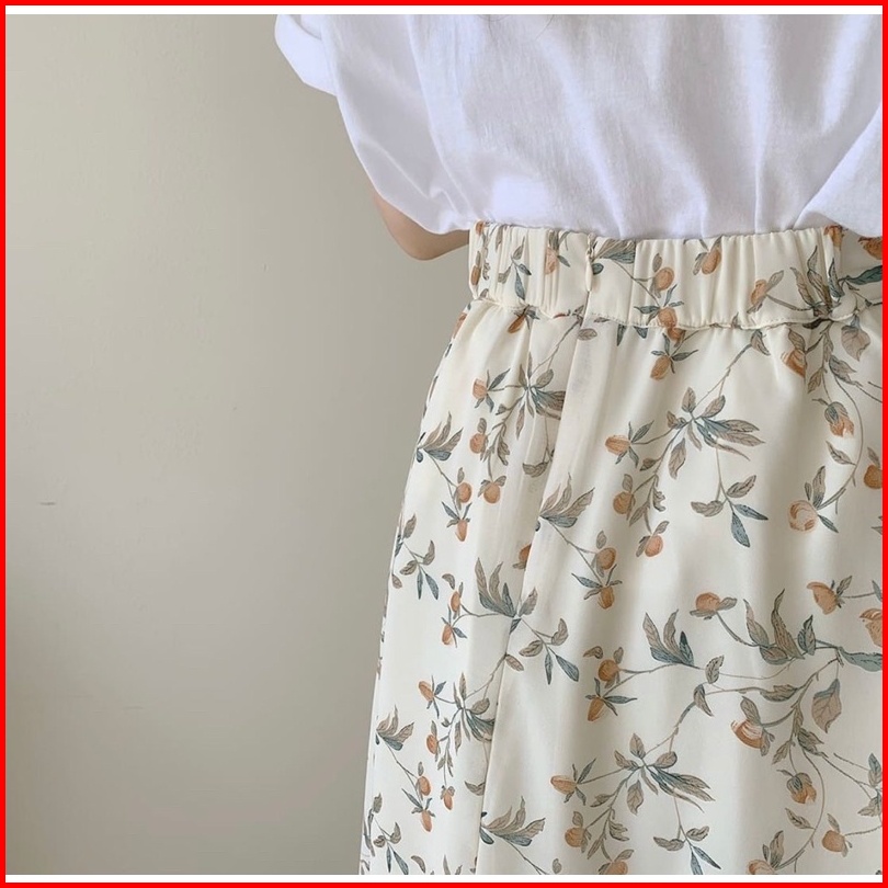 Yuka Floral Skirt Vintage White Midi Summer Pantai Casual Korea Style Chic Look Bunga Musim Panas Retro Tempramen Beach