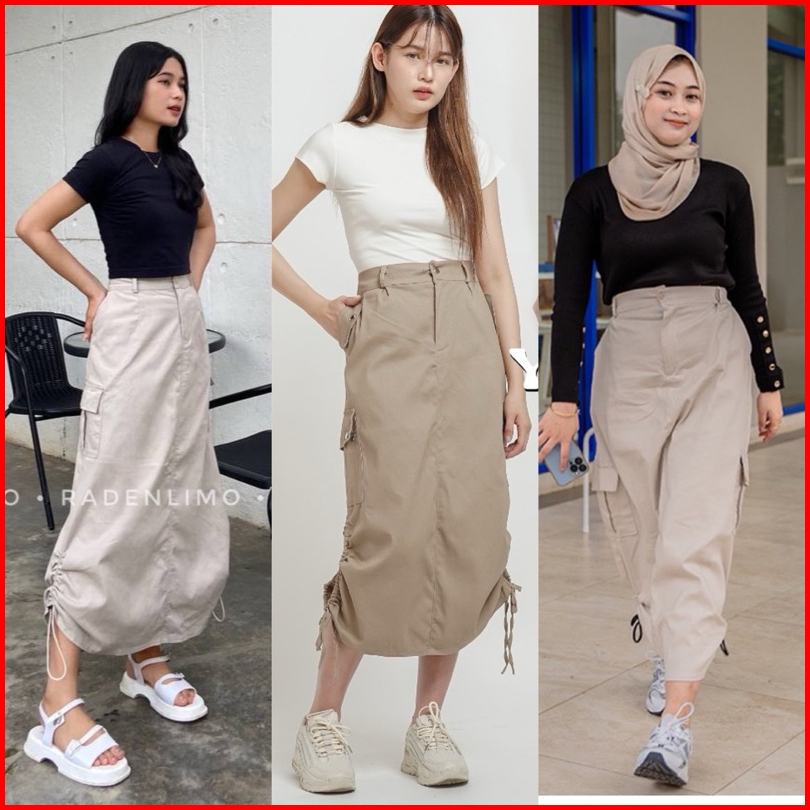 Rok Cargo Premium Korean Skirt Style Katun Twill Melar