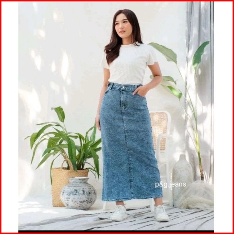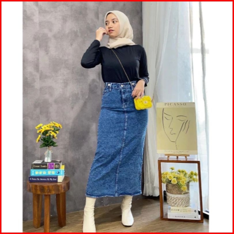 Rok Span Terbaru Trend Korean Style Street Theana Rok Jeans Skirt Panjang Slim Fitting