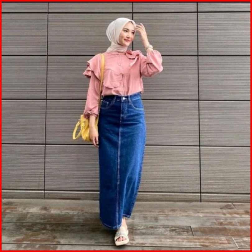 Rok Jeans Wanita Span Bahan Street Rok Denim Korean Style Theana Panjang Rok Span Terpopuler