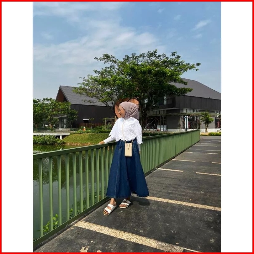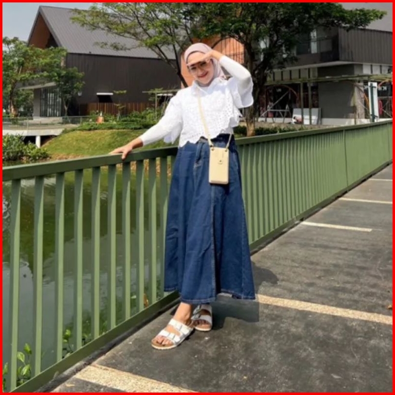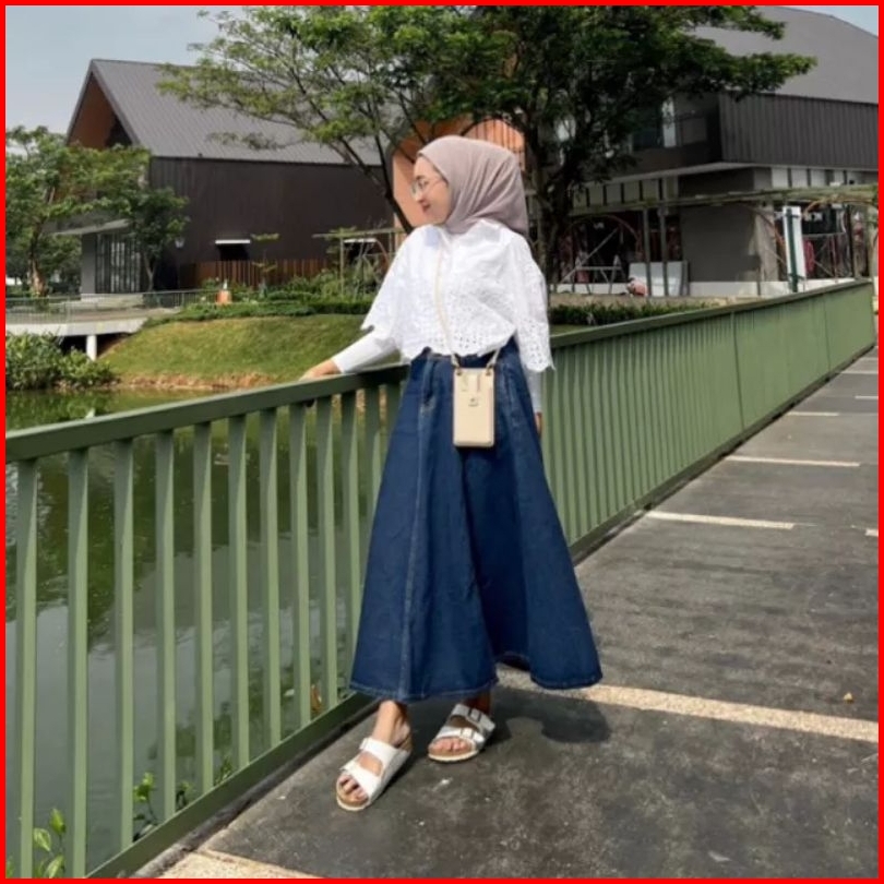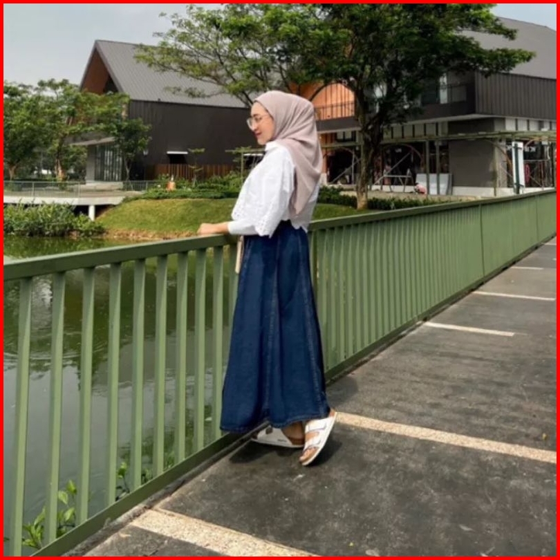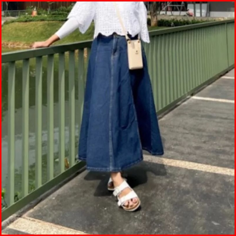 Fashion Wanita Rok Korean Style Rok Jeans 7 8 Rok Highwaist Pleated Skirt Long Skirt Rok Model A