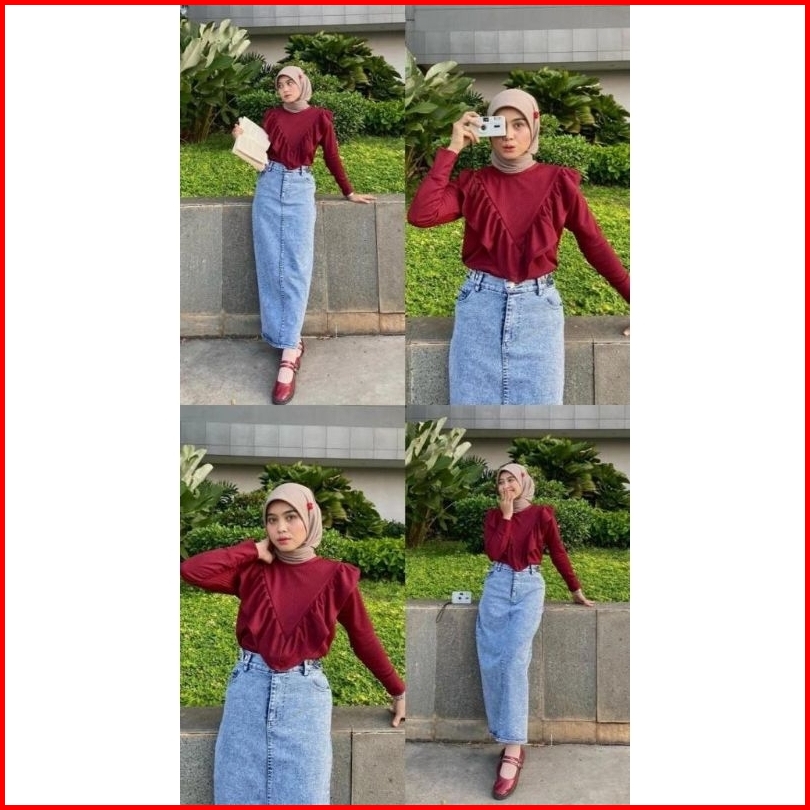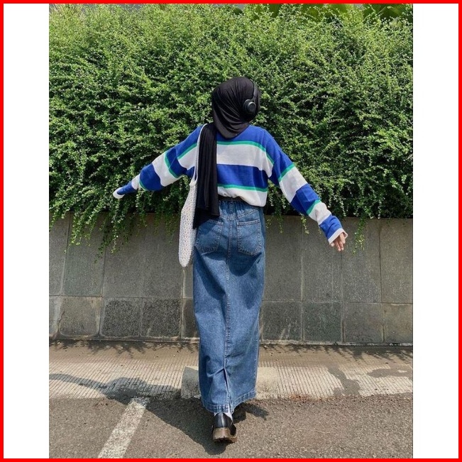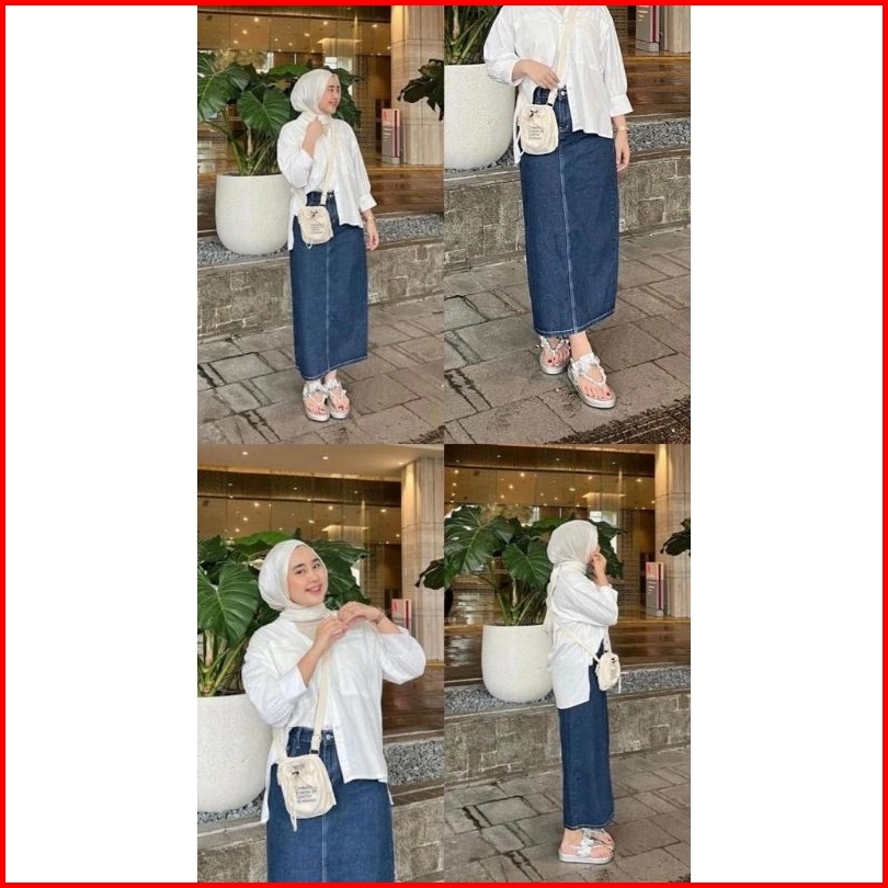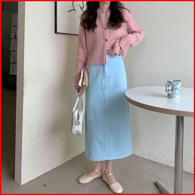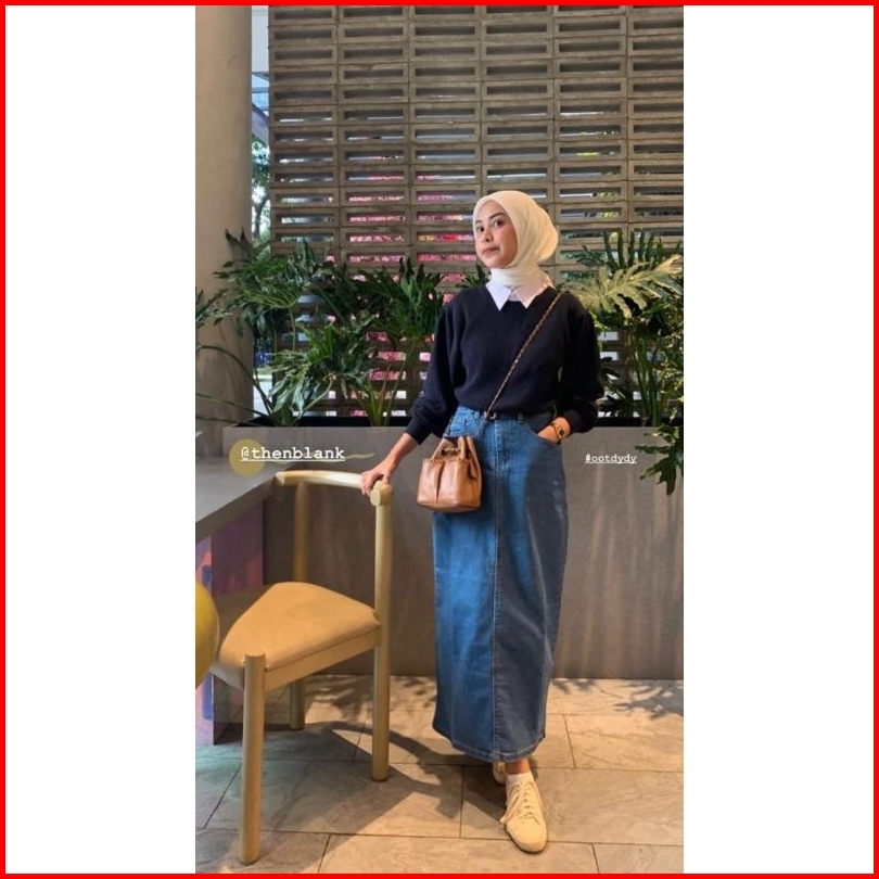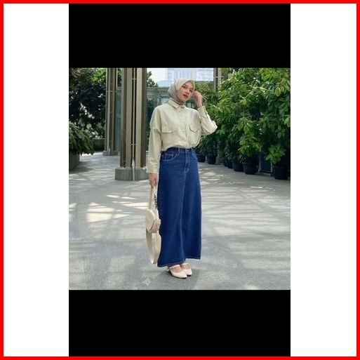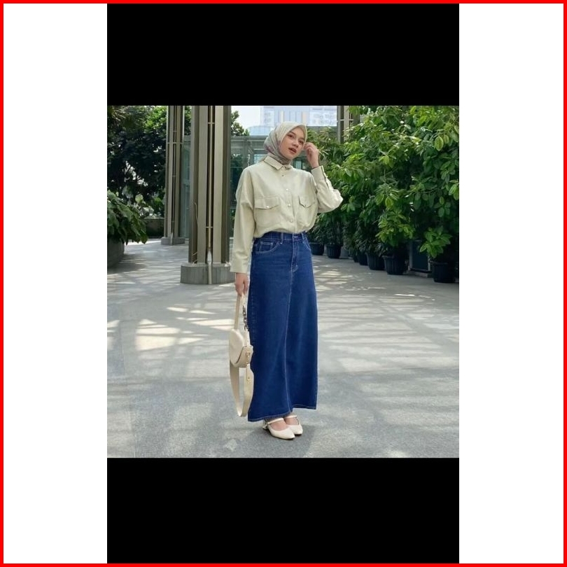Rok Jeans Skrit Casual Kuliah Student Bahan Melar Rok Skirt Wanita Standar Ada Jumbo Xxl