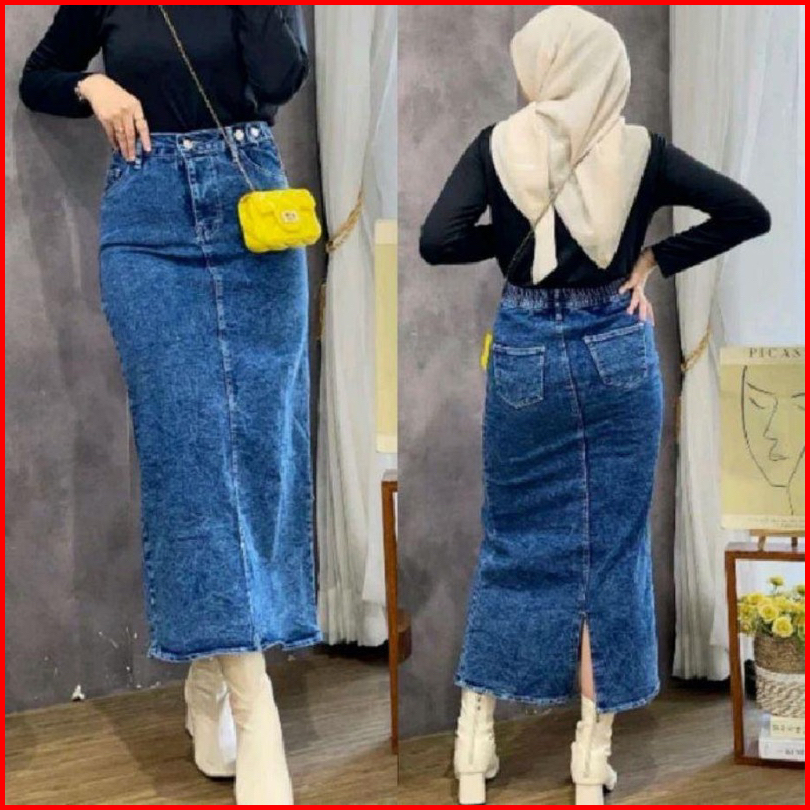 Rok Jeans Highwaist Theana - Rok Jeans Skirt 7 8 Rok Jeans Korean Style Panjang Terbaru