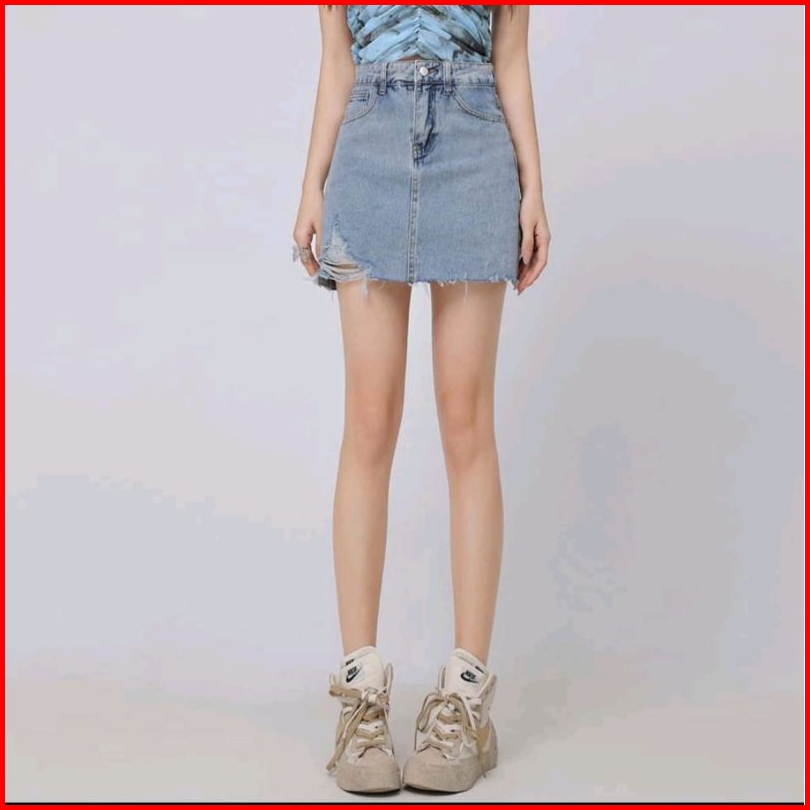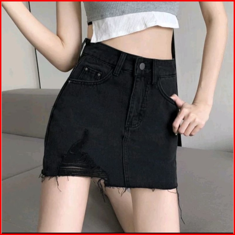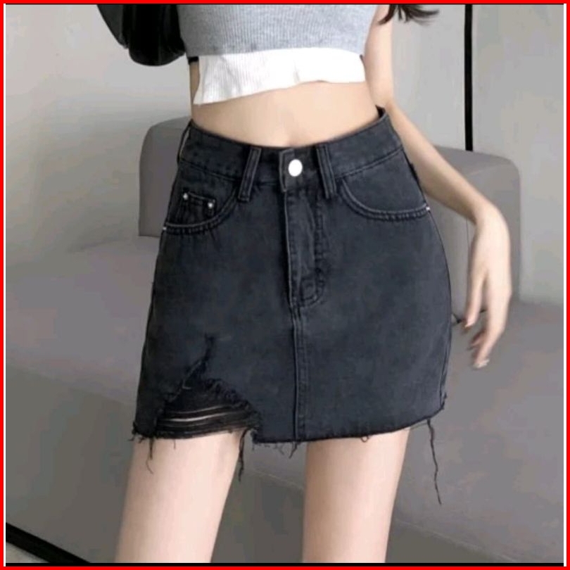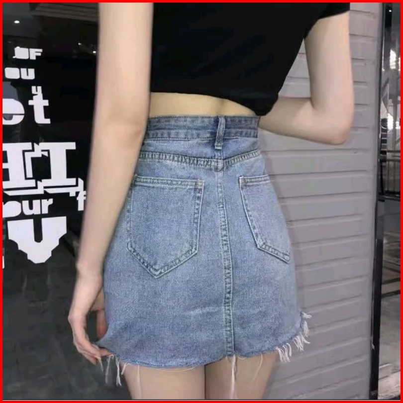Rok Jeans Pendek Jumbo Rok Skirt Midi Rok Denim Rok Highwaist Korea Style Rok Viral
