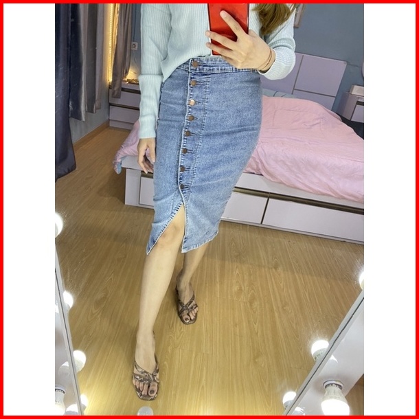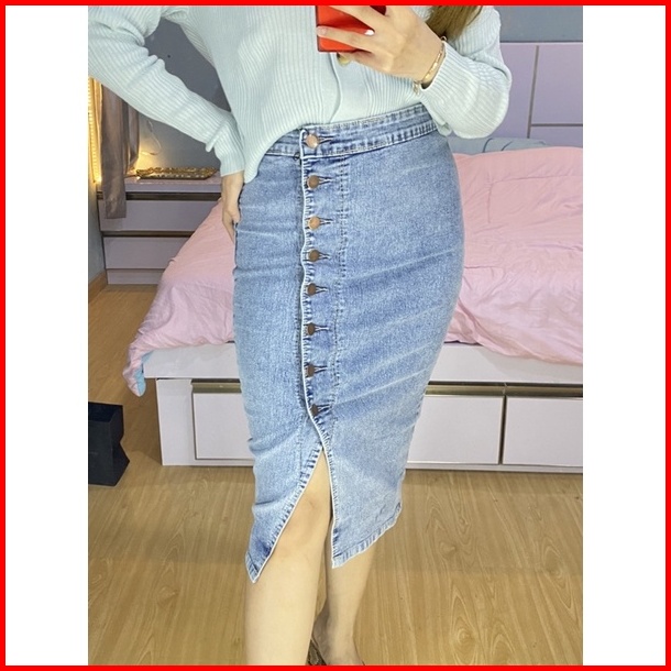 Rainey Button Skirt Rok Jeans Wanita Super Ngaret
