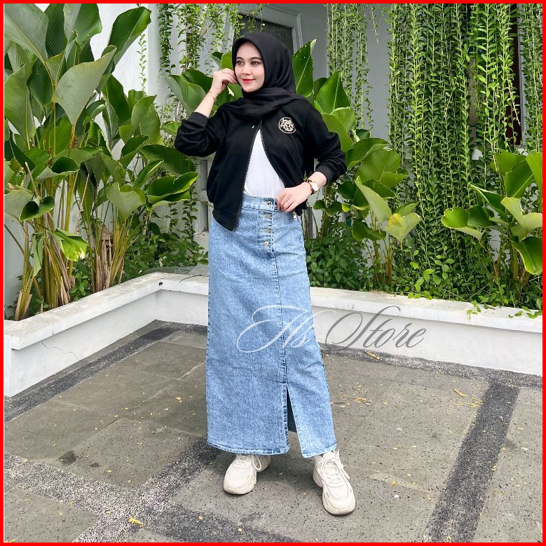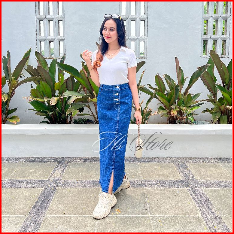 Rok Jeans Haighwaist Belah Samping Korean Style Rok A-line