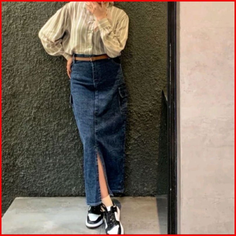 Rok Cargo Jeans Wanita Highwaist Highwaist Rok Cargo Jeans Rok Cargo Jeans Wanita Belah Depan