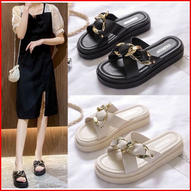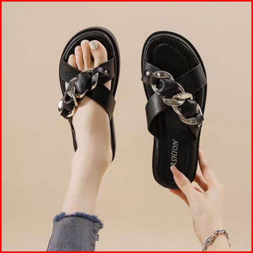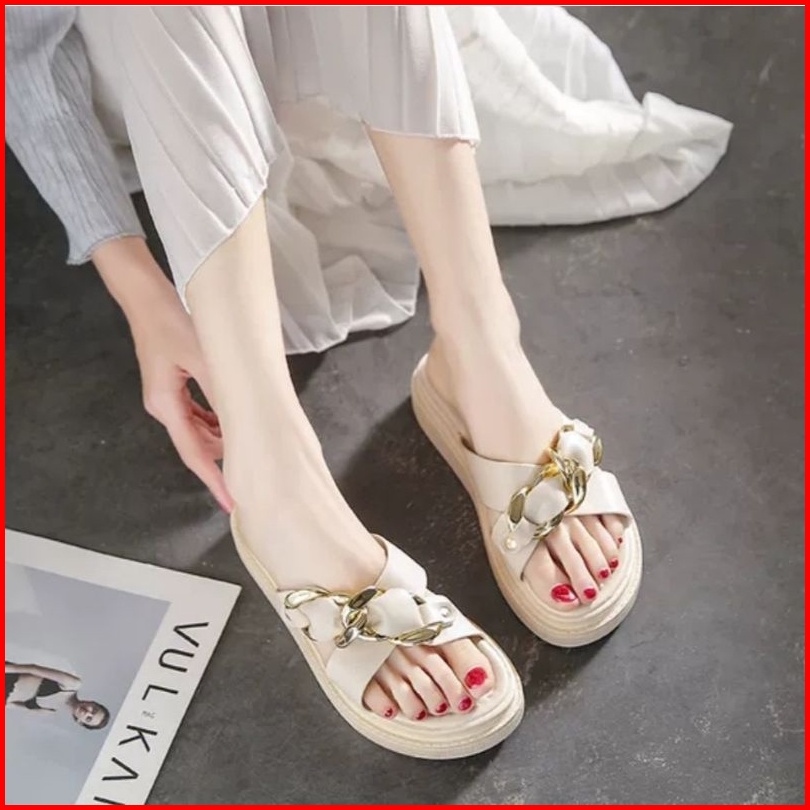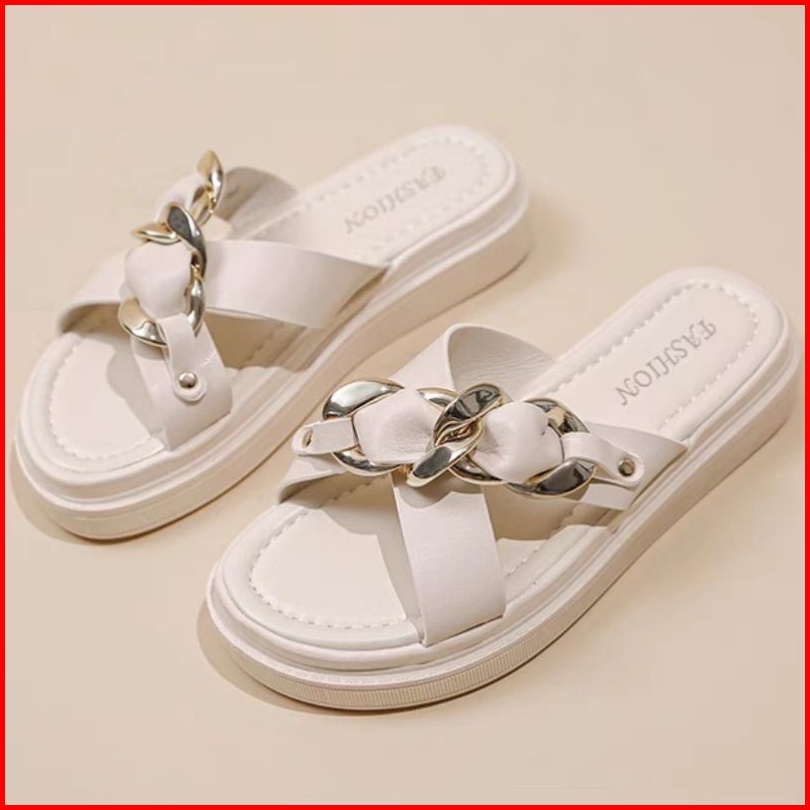 Sandal Wanita Fashion Import Terbaru Premium Quality Nf 2029 Sendal Slop Wanita Silang Rantai Viral Kekinian