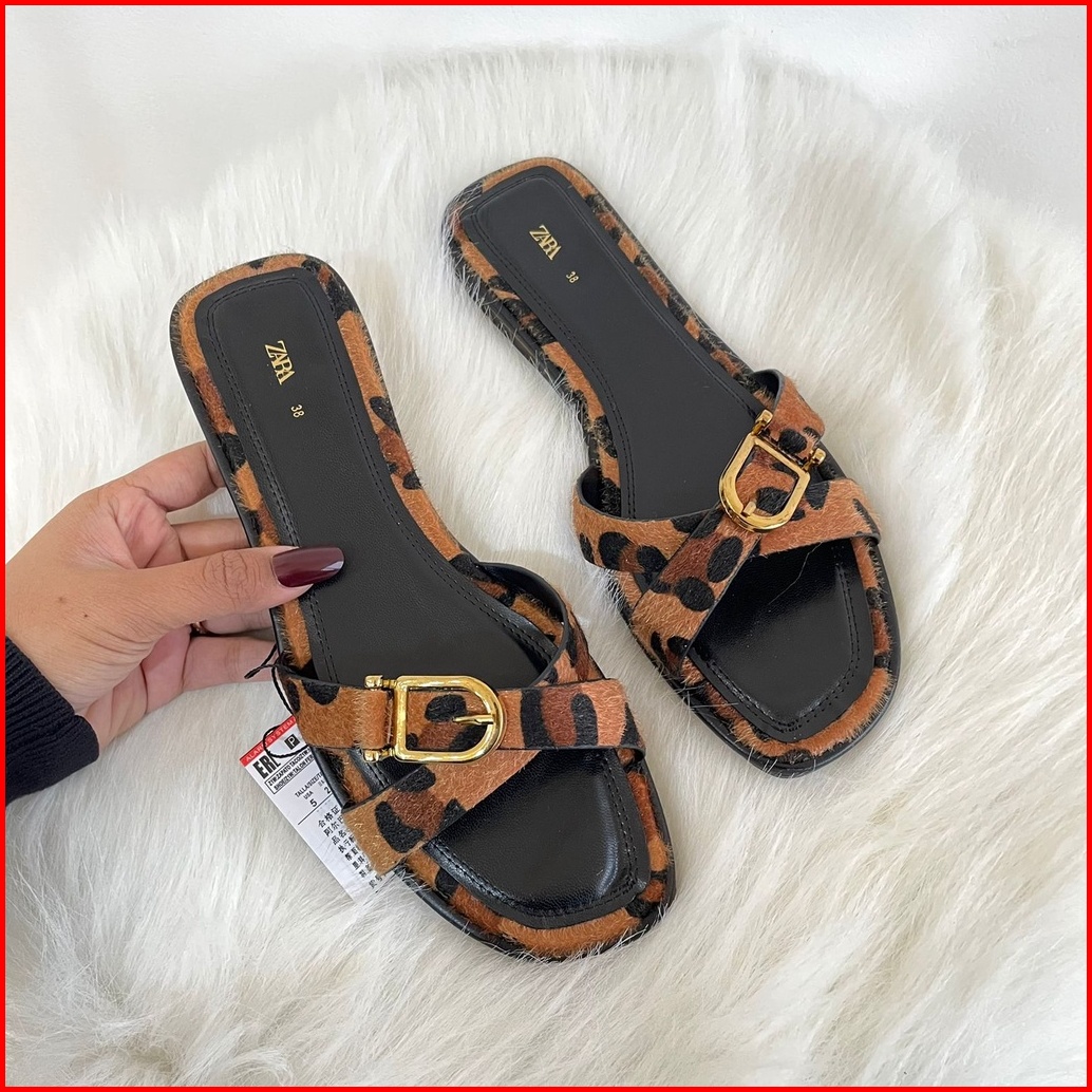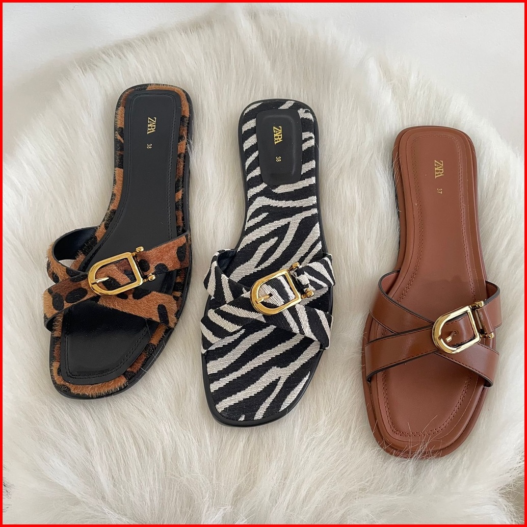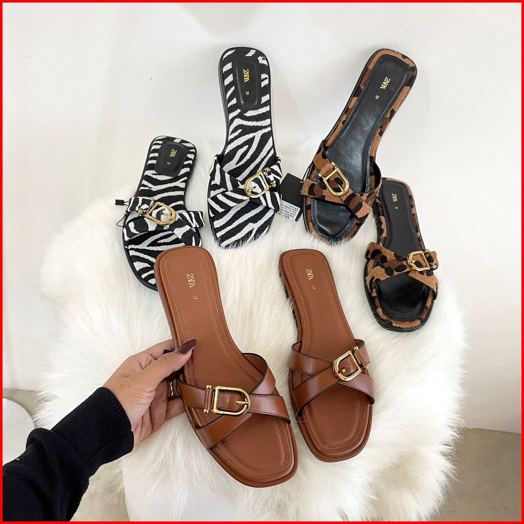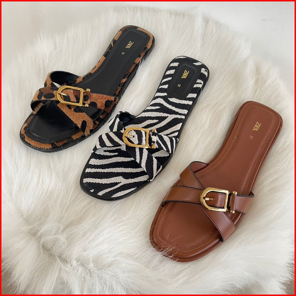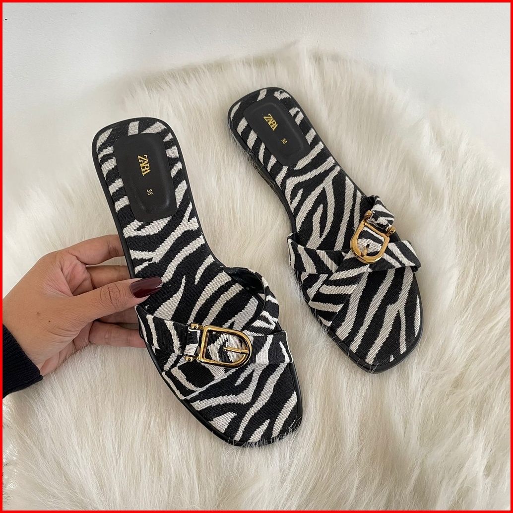 Zr 658 Sandal Kulit Sintetis Zebra Brown Leopard