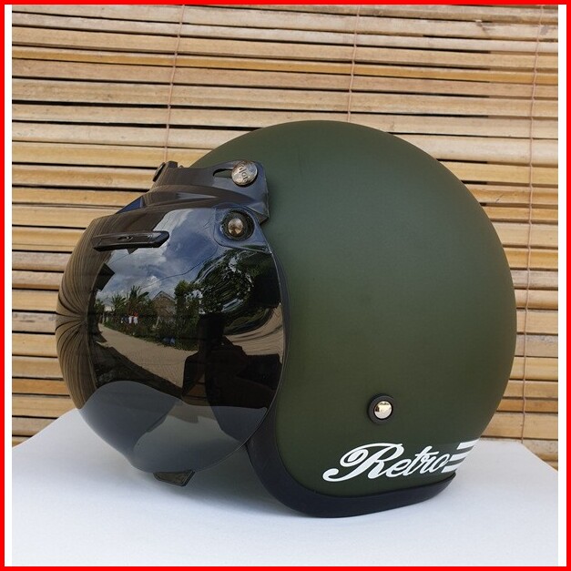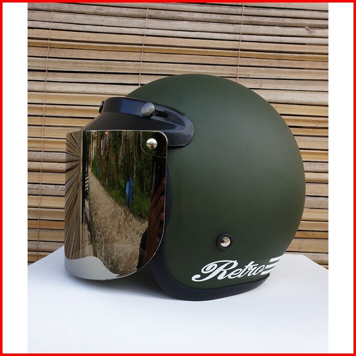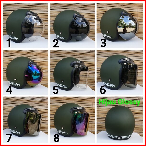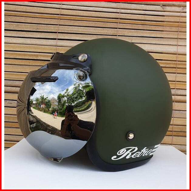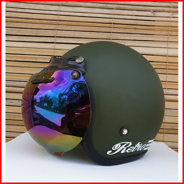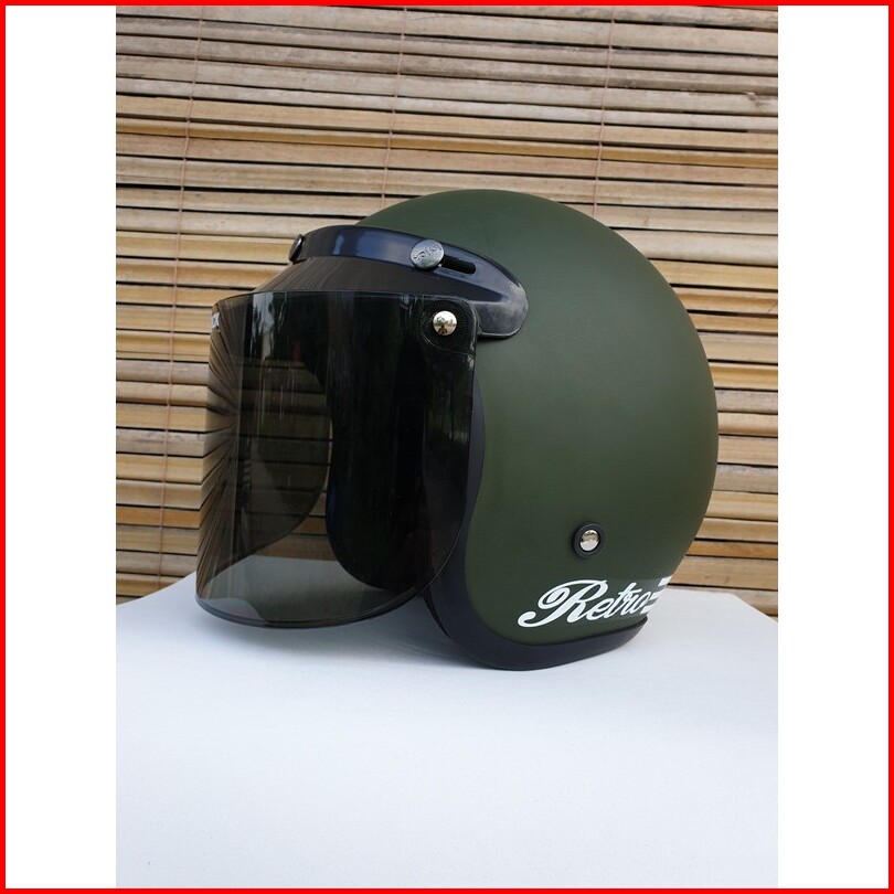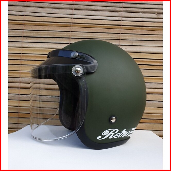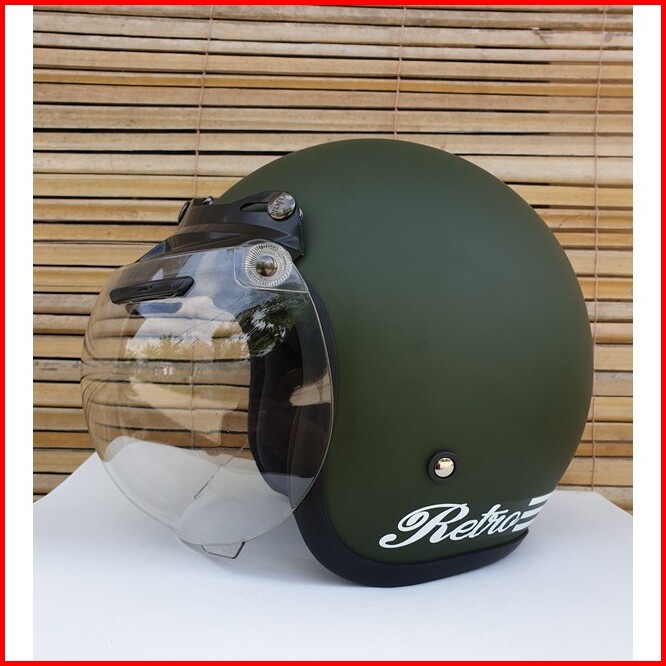 Helm Retro Bogo Vespa Warna Hijau Doff Untuk Wanita Pria Cewek Cowok Dewasa