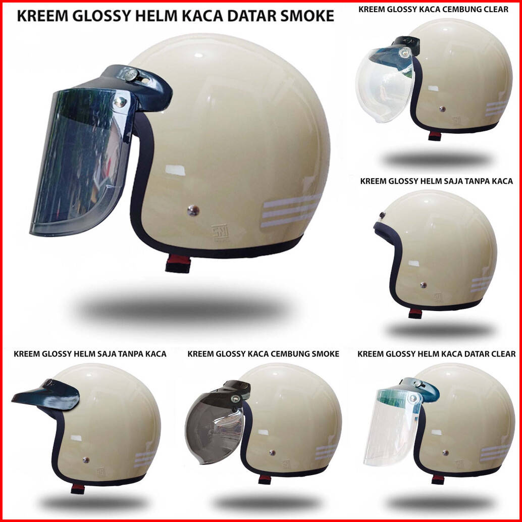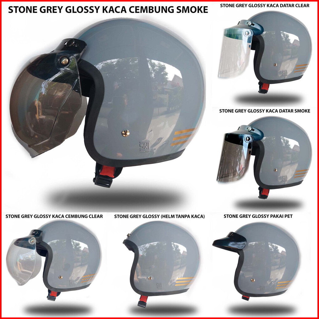 Helm Bogo Garis 3 Clasic Retro Classic Cewe Cowo Dewasa Bagus Murah Hijab Cepol Warna Stone Grey