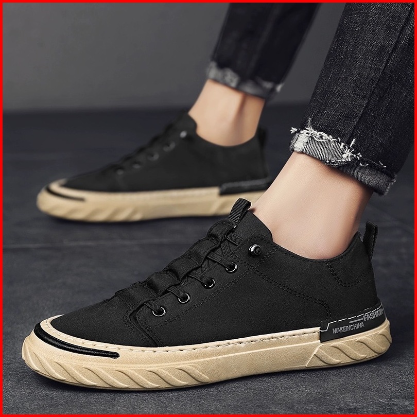 Highland Sepatu Pria Hitam Sneakers Outdoor Sepatu Olahraga Kasual Cowok Sport Shoes Mc109