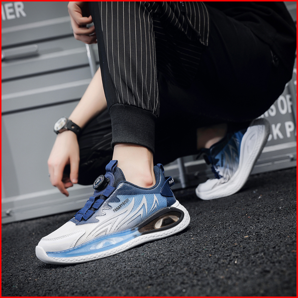 Sepatu Pria Model Terbaru Tali Putar Kekinian Trendy Sneakers Sepatu Cowok Biru Fashionable Original