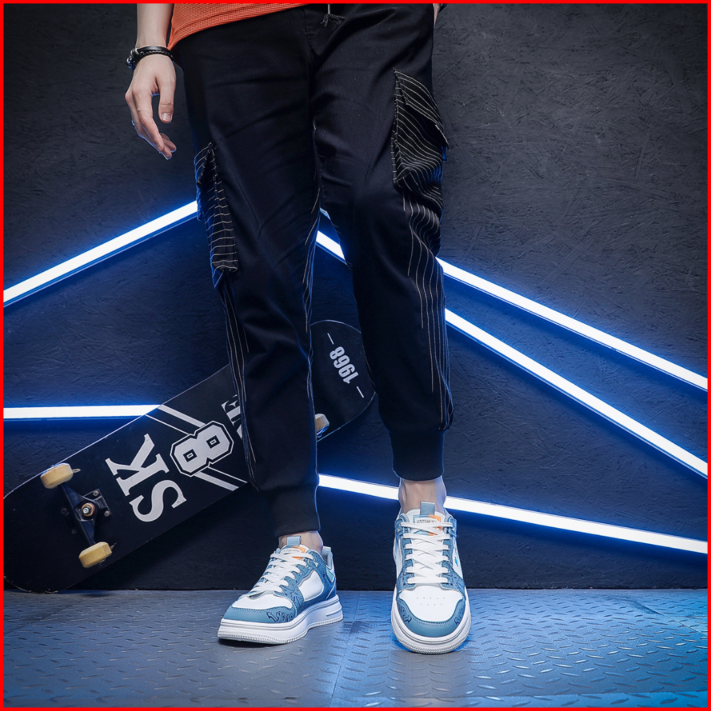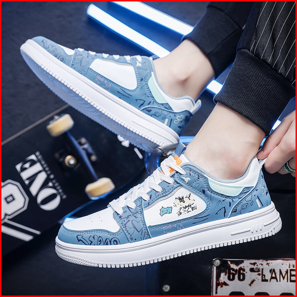 Sneakers Pria Modis Biru Trendy Kekinian Kasual Sepatu Cowok Fashion Sport Bertali High Quality
