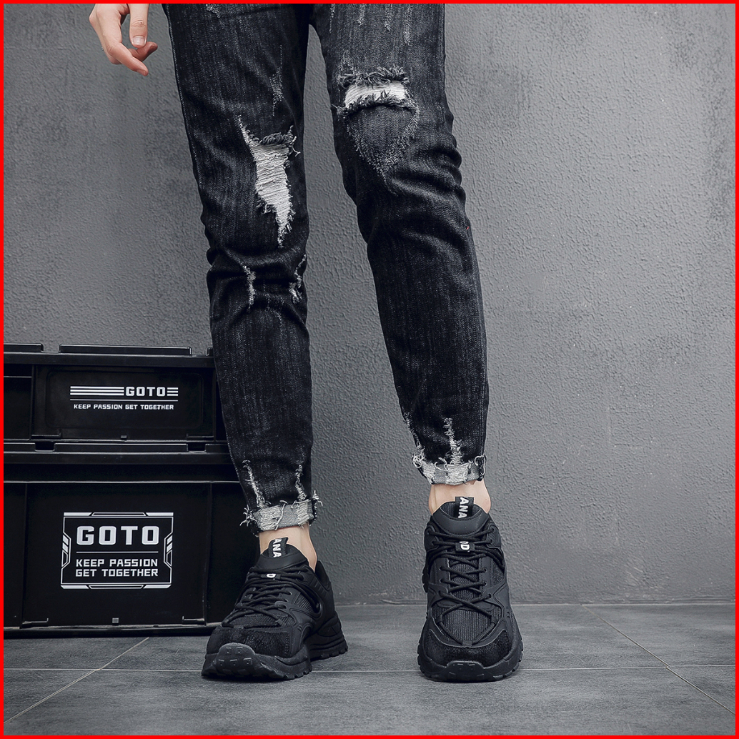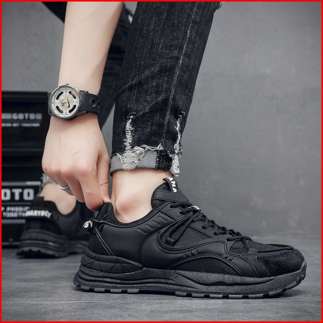 Sepatu Cowok Fashion Hitam Kekinian Casual Kece Sneakers Sepatu Pria Bertali Modis Trendy Qn240