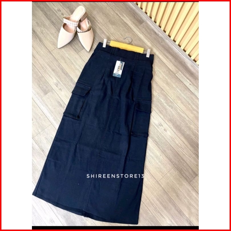 Rok Korean Style Rok Cargo Wanita Panjang Rok Span Cargo Skir Cargo Twil Impor