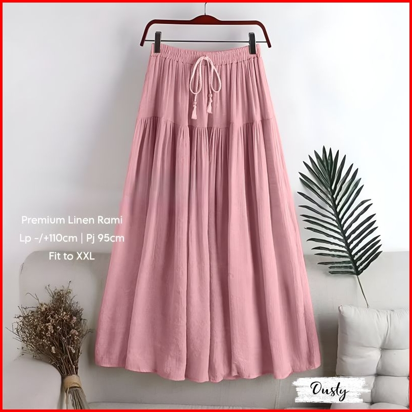Rok Linen Premium Korean Style Hikari Skirt Polos All Size Simple Modis Elegant High Quality By Mahli Fashion