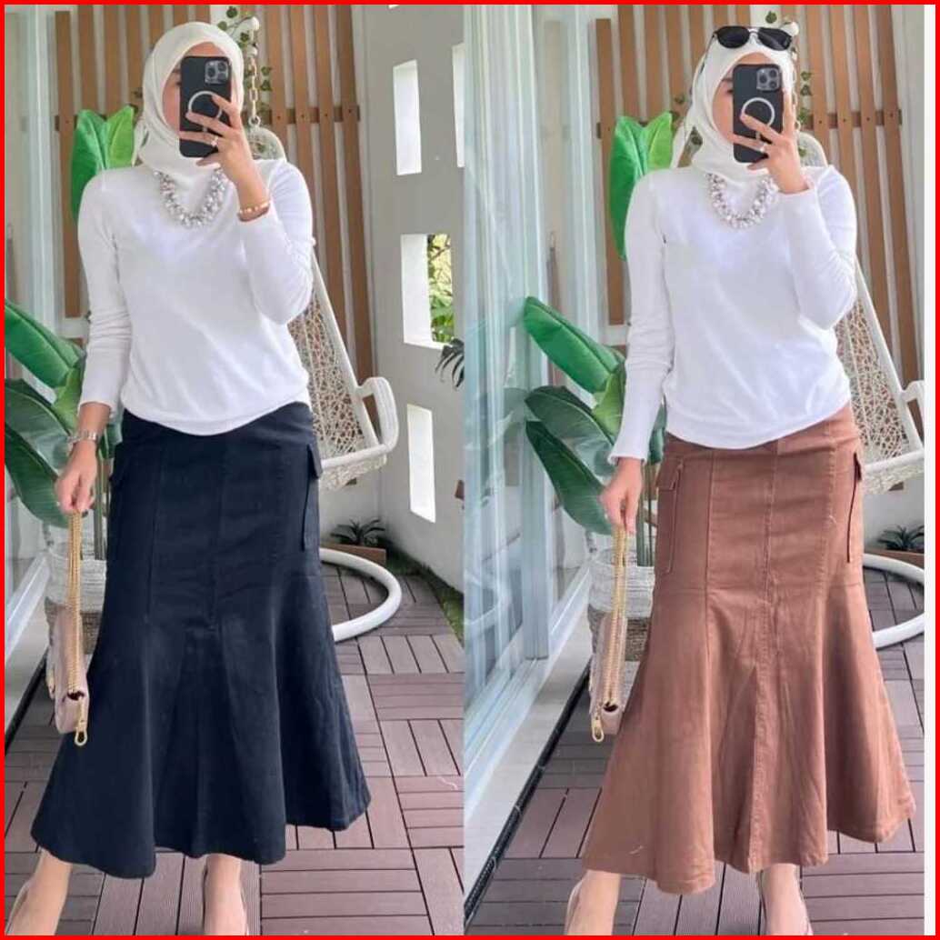 Rok Duyung Cotton Twill Stretch Rok Wanita Korean Style