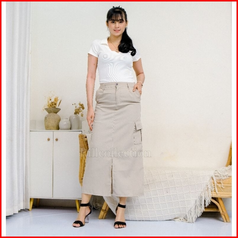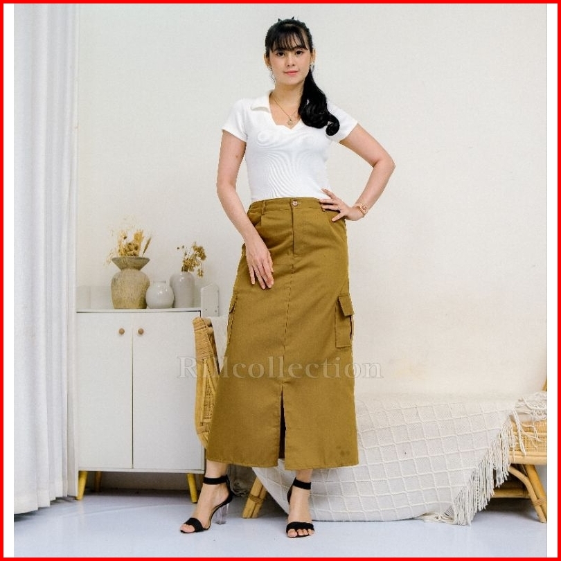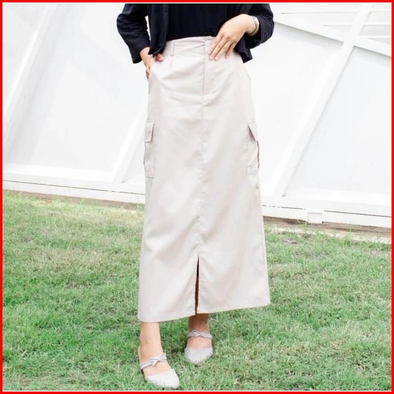 Rok Cargo Twill Belah Tengah Rok Cargo Wanita Korean Style Rok Cargo Standart Jumbo