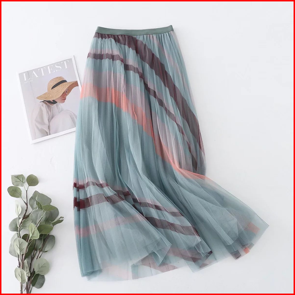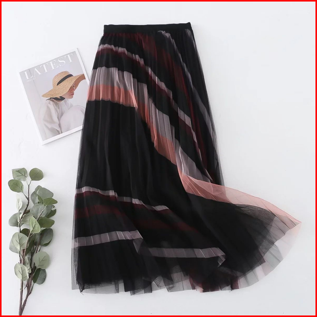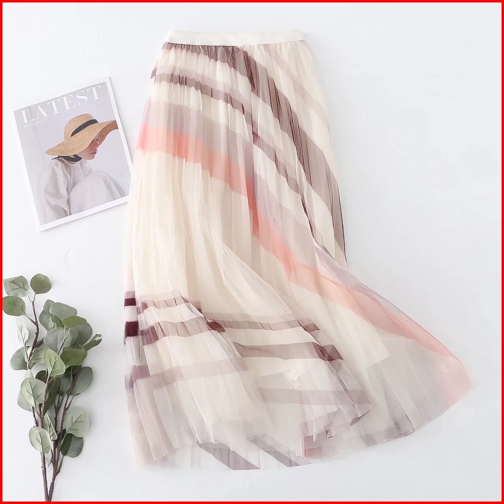 Rok Rok Panjang Rok Midi Rok Pink Rok Cantik Rok Motif Garis Miring