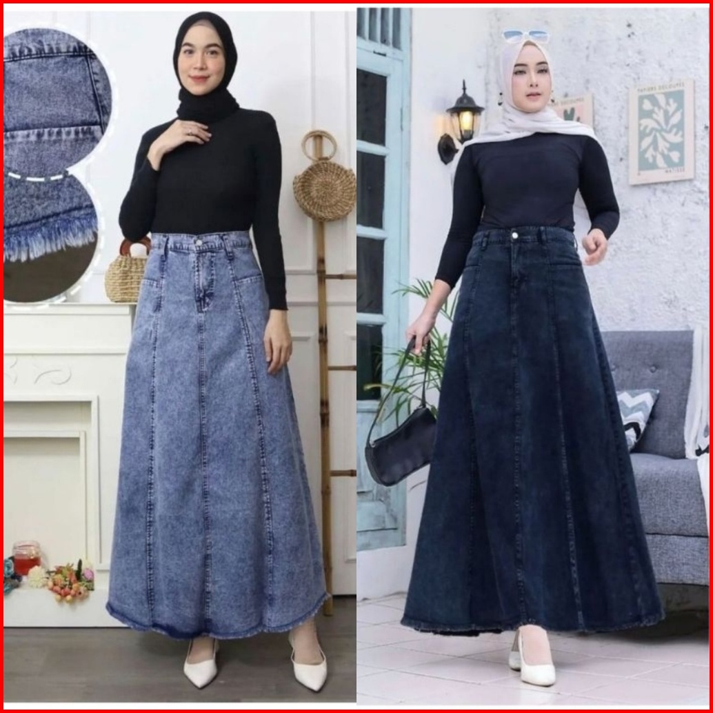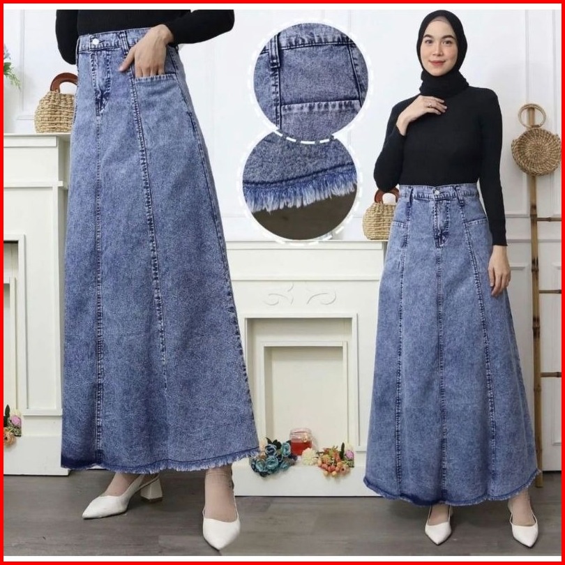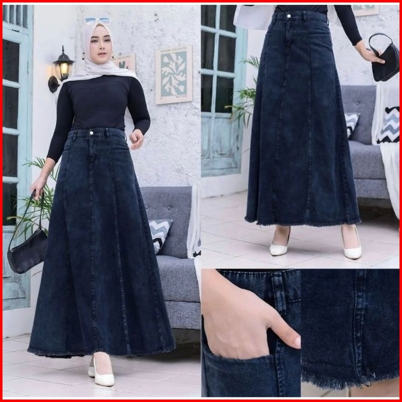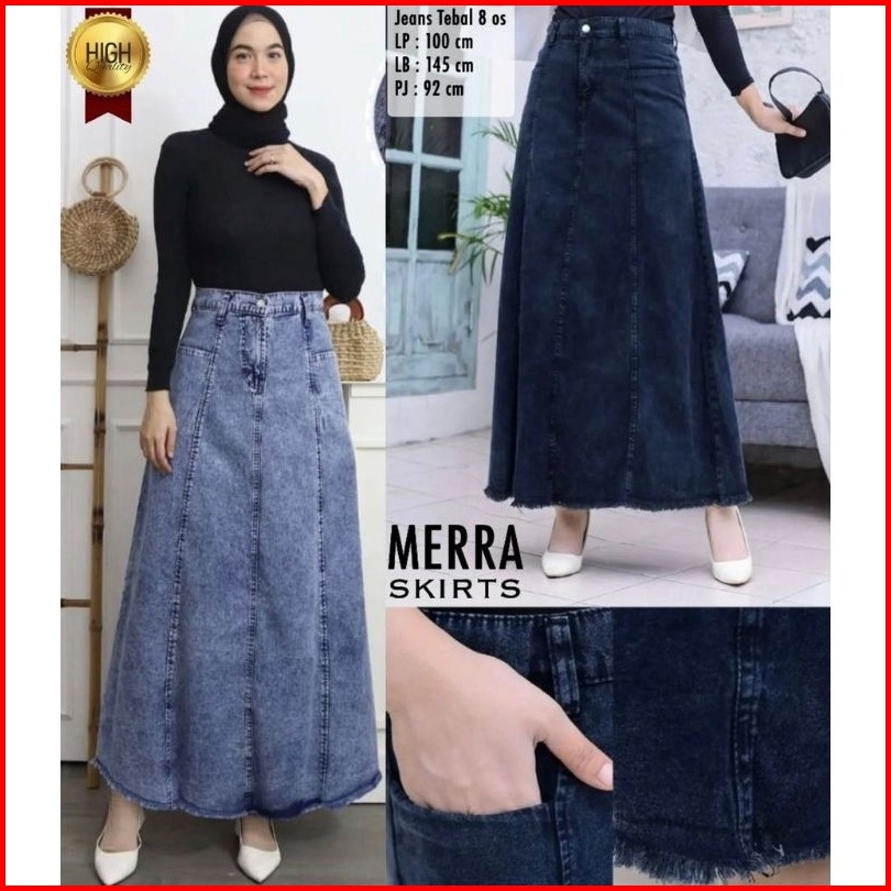 Merra Skirt Rok Jeans Span Rawis Wanita Premium Korean Style Basic Skirt Jeans