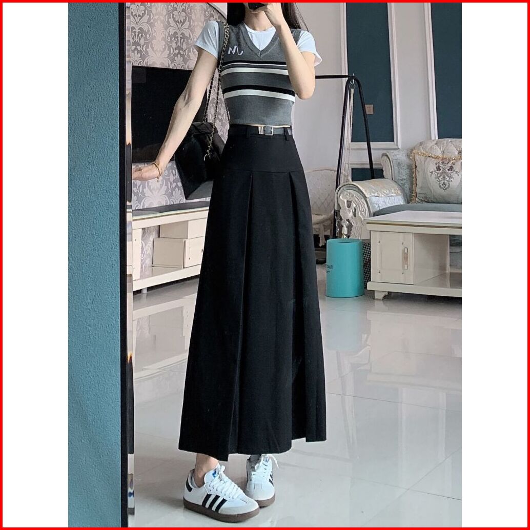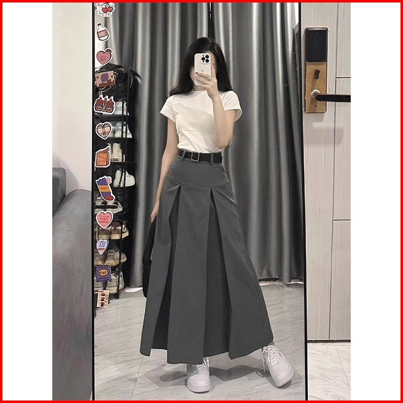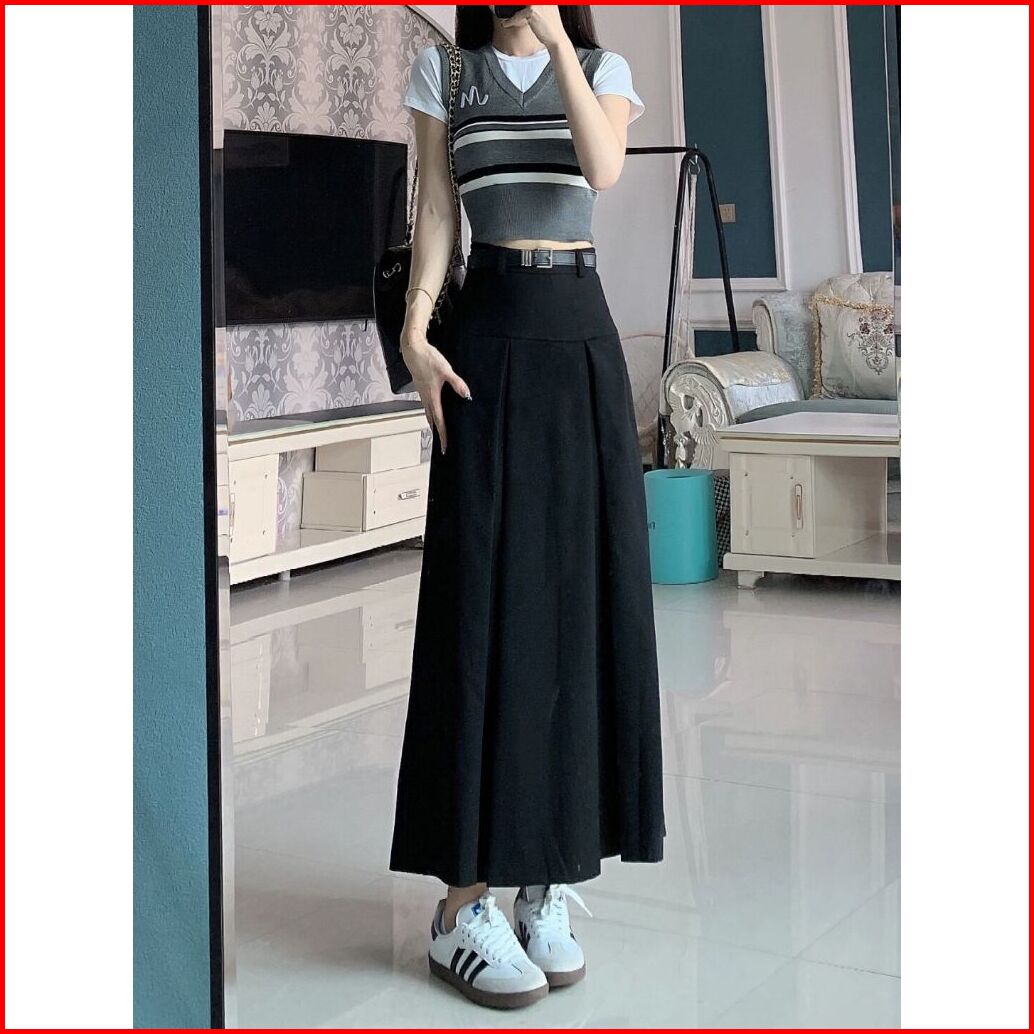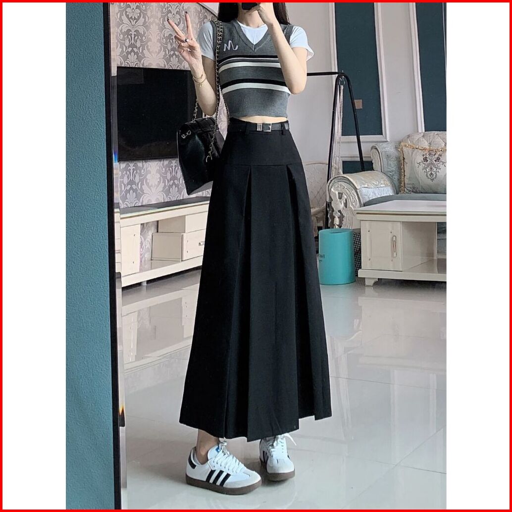 Rok Lipit A-line Hitam Wanita Kasual Impor Highwaist Korean Style