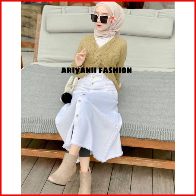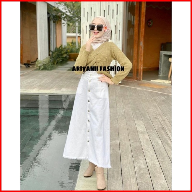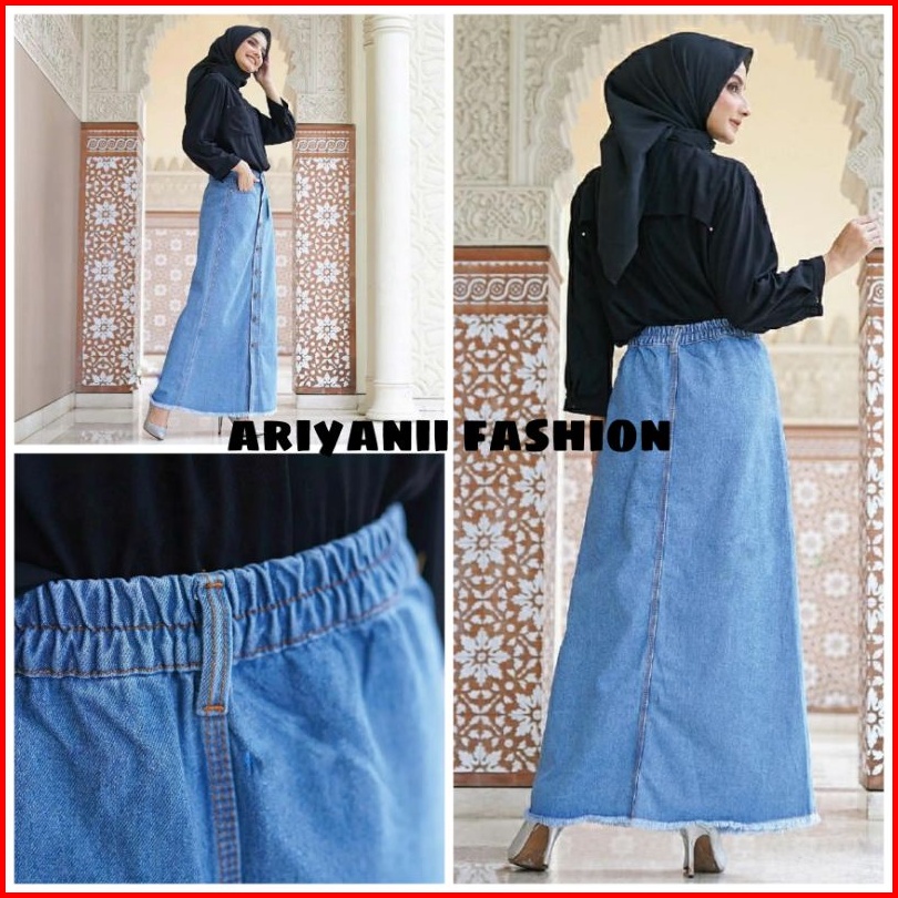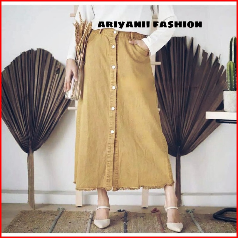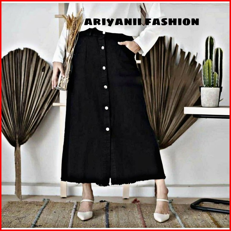 Jeans Wanita Rok Button Skirt Span Cewek Rok Denim Panjang Murah Kancing Depan Sepan