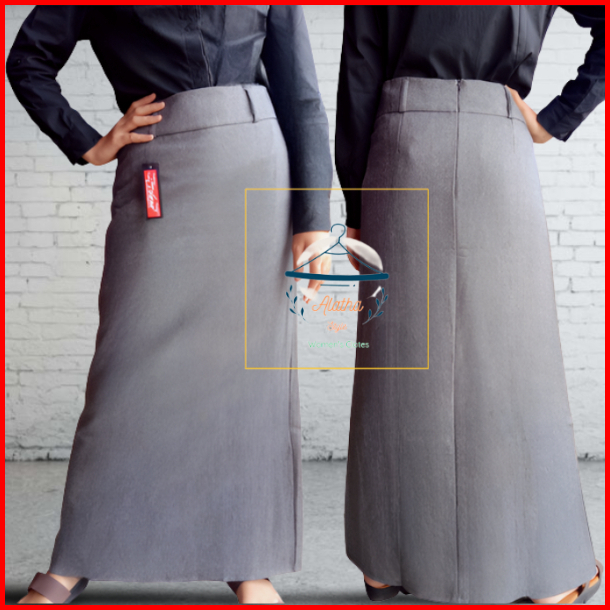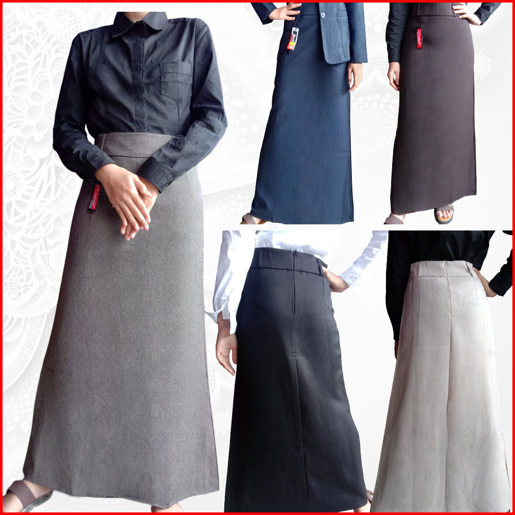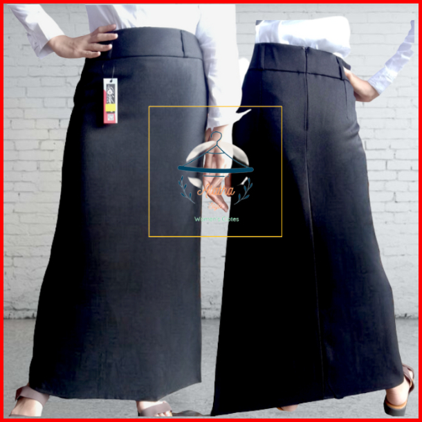 Rok Hitam Panjang Wanita Model A Line Bahan Wol Untuk Formal Kerja Kantor