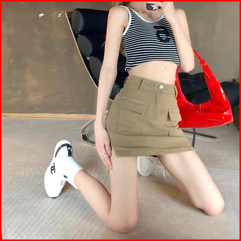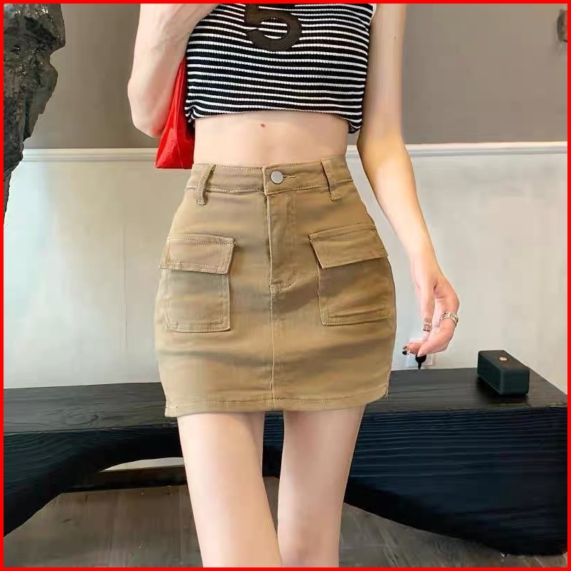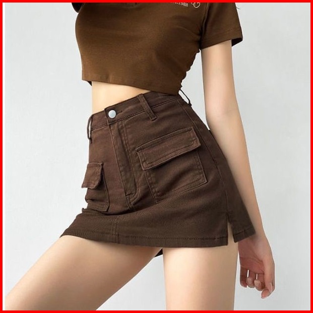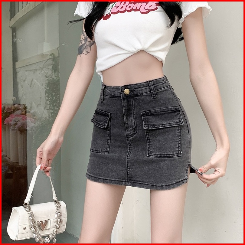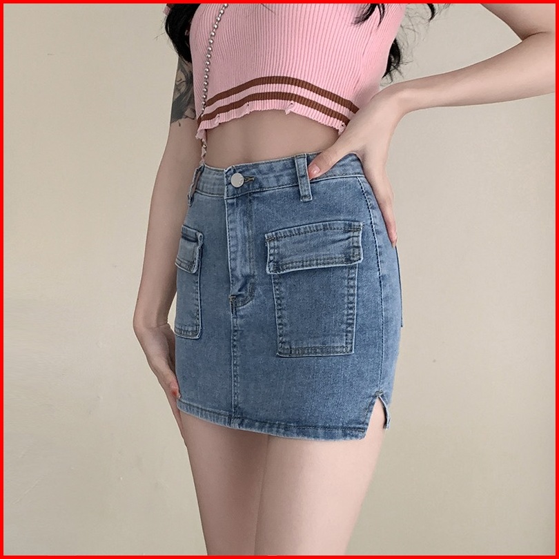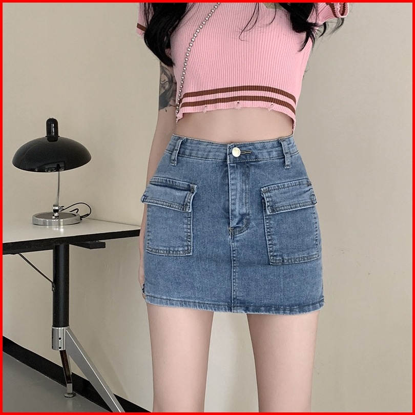 S-6xl Rok Denim Wanita Gaya Korea Rok Denim Ukuran Besar Celana Rok Pinggang Tinggi Melar