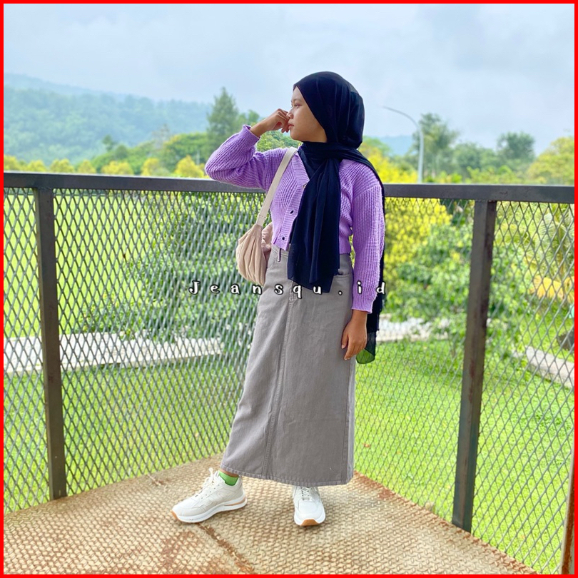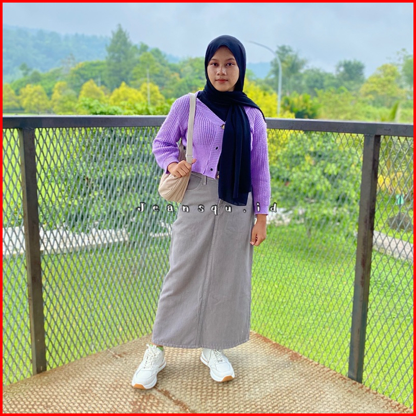 Rok Skirt Jeans Basic Abu Theana Span Wanita Jeans Maxi Skirt Rok Panjang Highwaist Murah Terbaru Rok Jins Denim Cargo