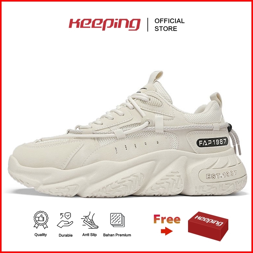 Keeping Sepatu Sneakers Pria Putih Kasual Sepatu Jalan Olahraga Cowok Outdoor Sports Shoes Ksr720