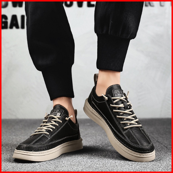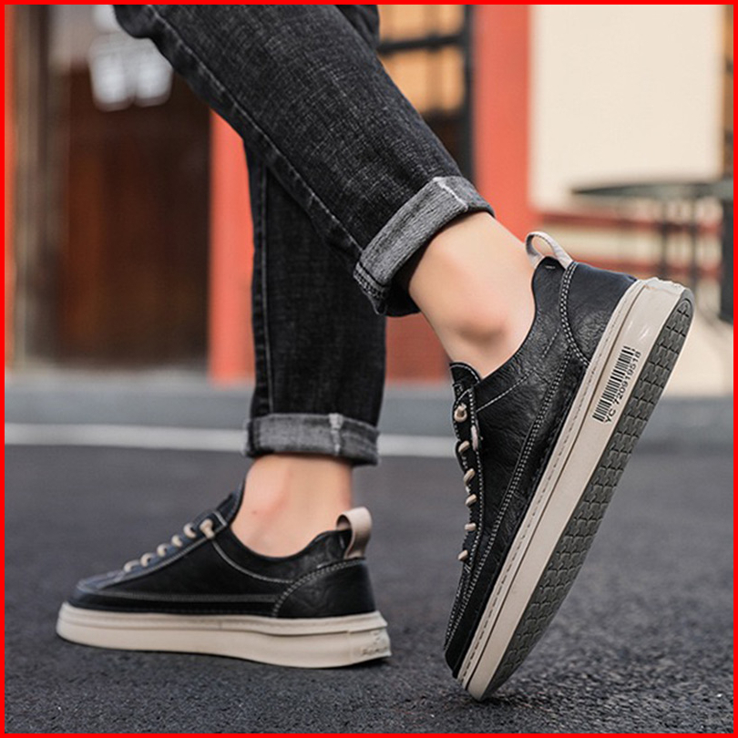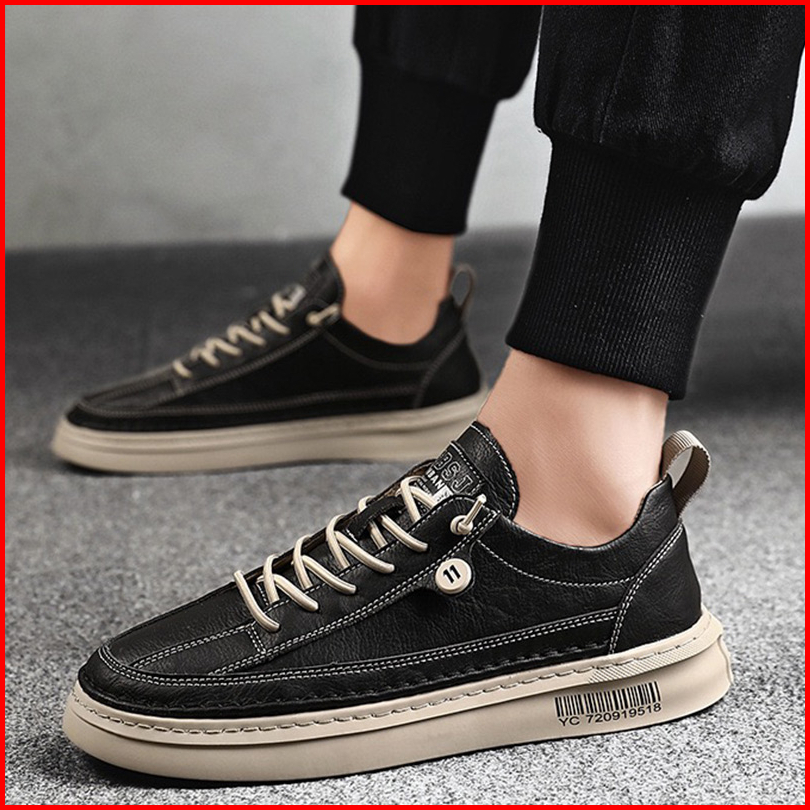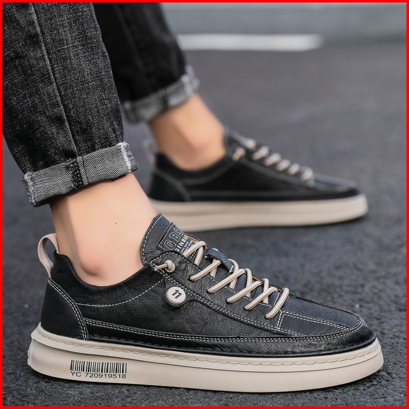 Highland Sepatu Pria Hitam Original Sneakers Pria Sepatu Jalan Casual Spatu Kantor Santai Model Tali Sepatu Kerja Bahan