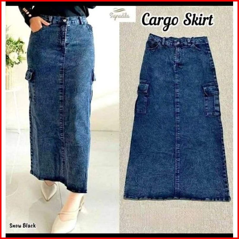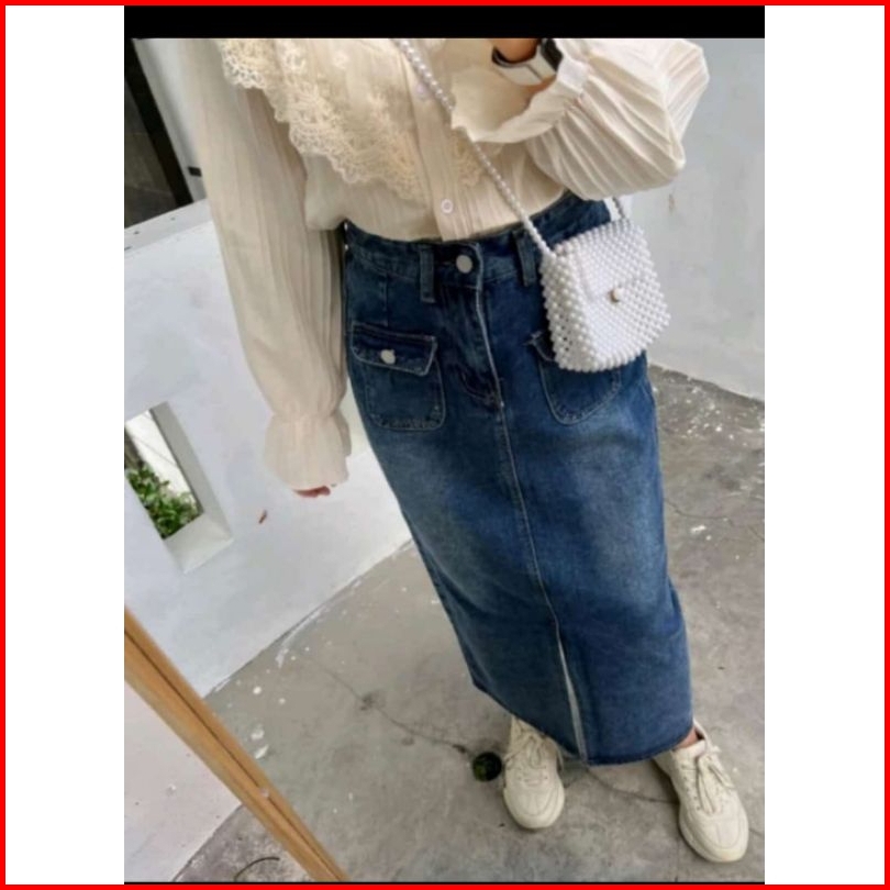Rok Jeans Theana Skirt Korean Style Rok Waish Kancing Denim