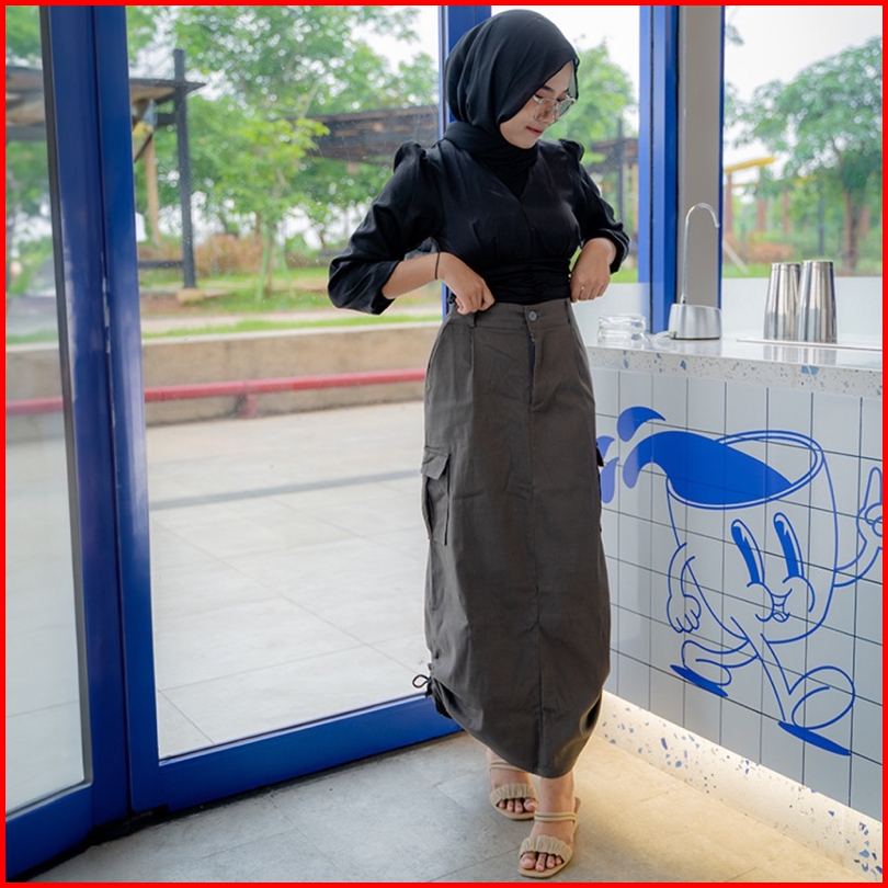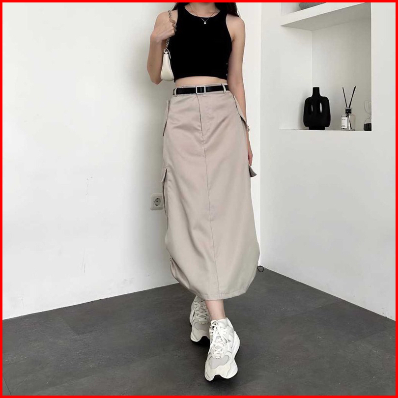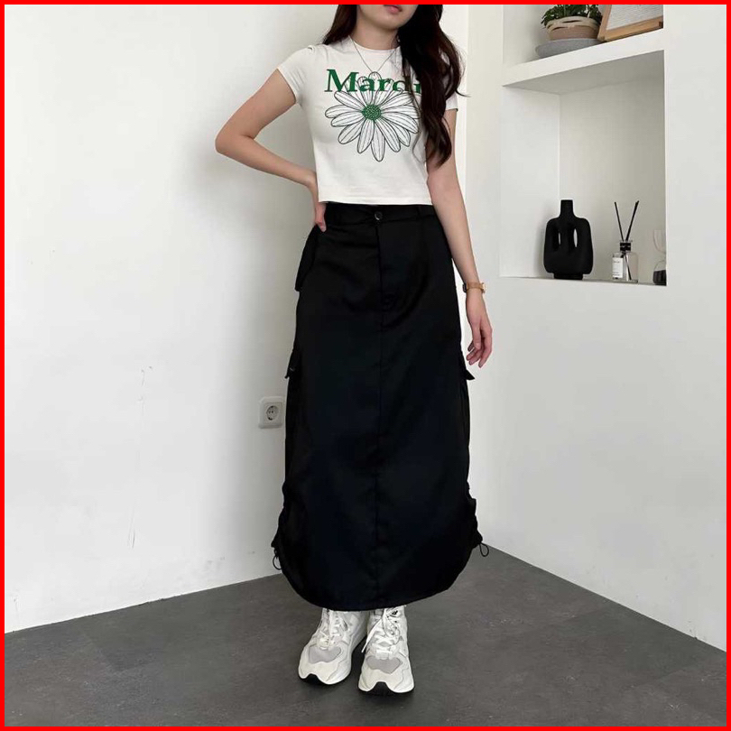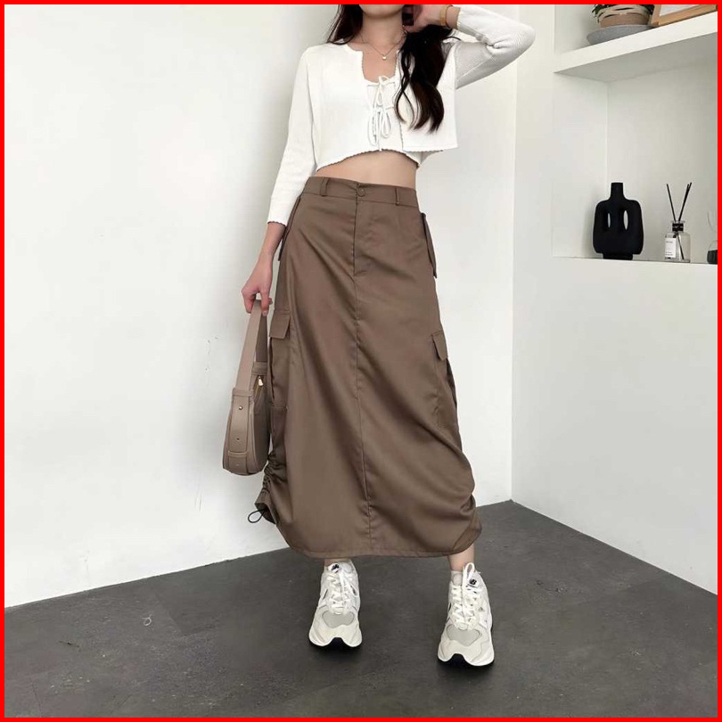 Alexa Rok Cargo Korean Skirt Style Katun Twill