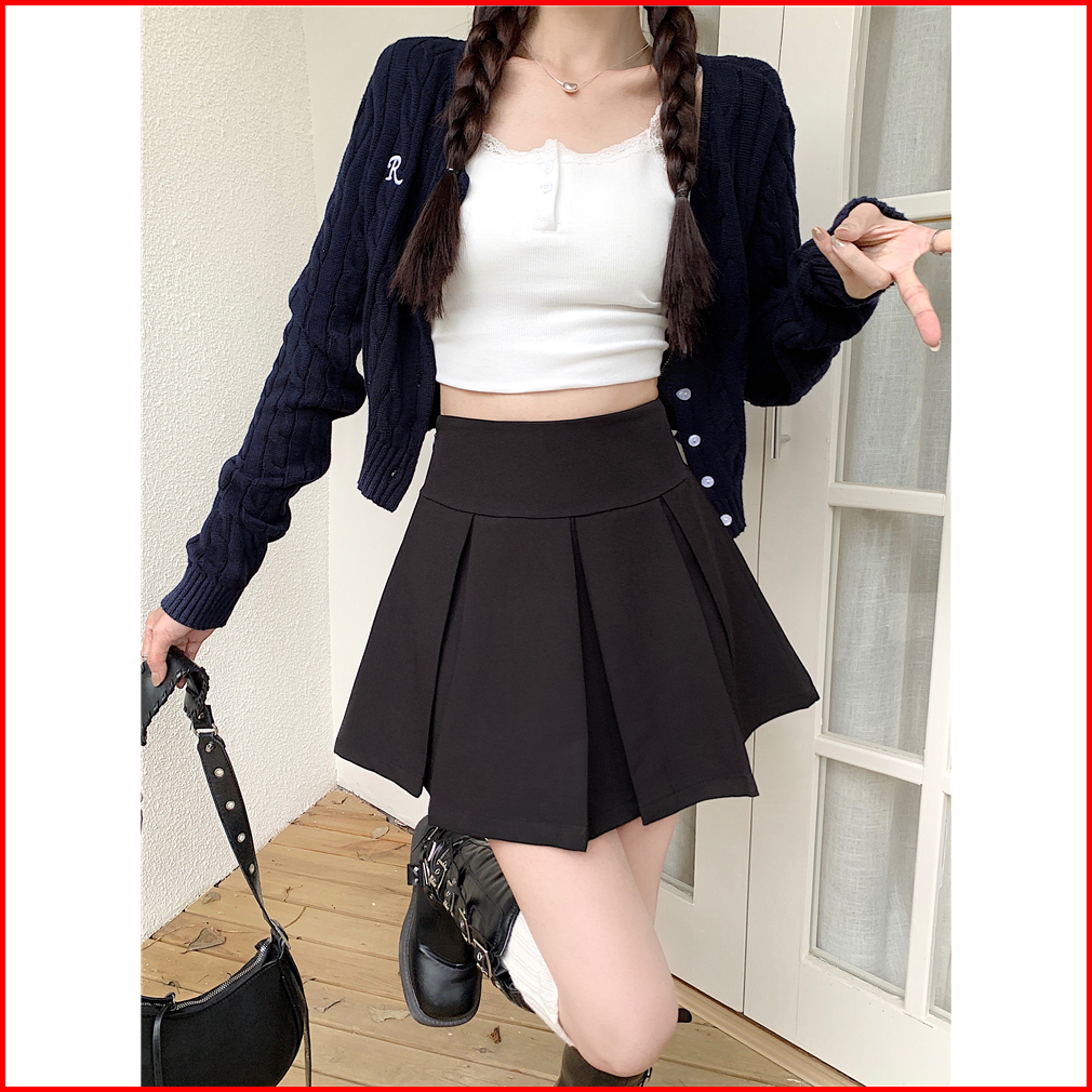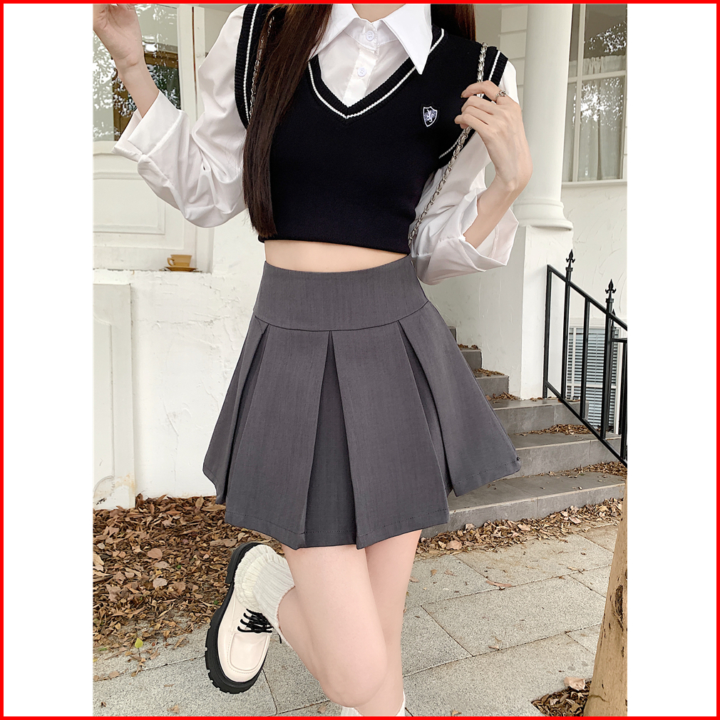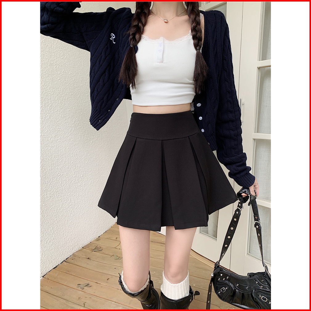 Rok Lipit Rok A-line Wanita Rok A-line Gaya Korea Rok Berlipat Ramping Pinggang Tinggi
