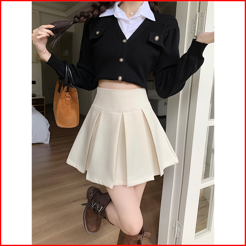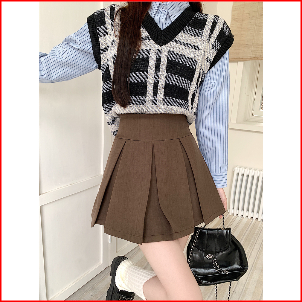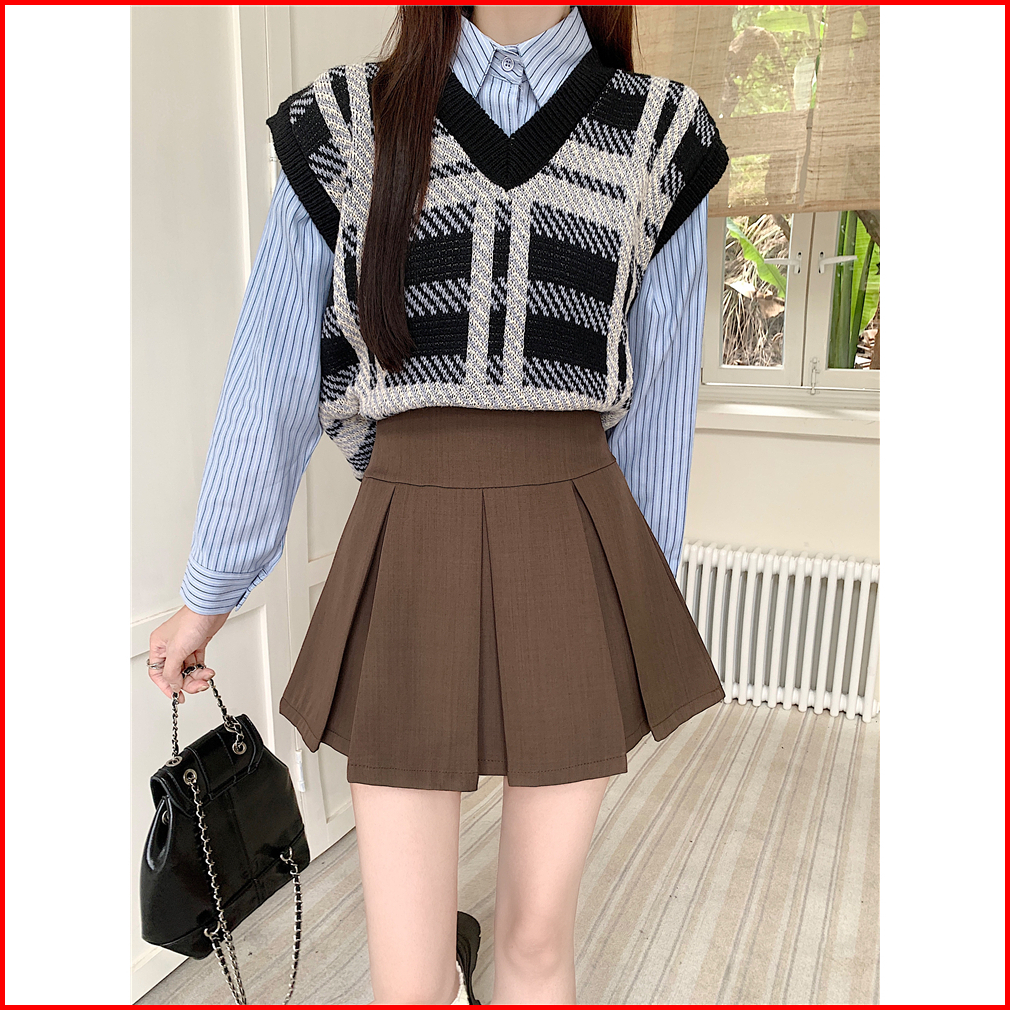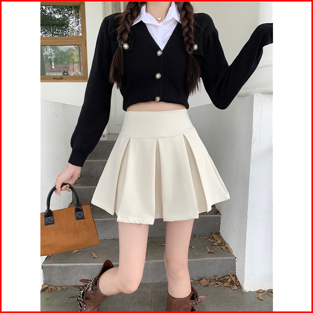 Rok Lipit Rok A-line Wanita Rok A-line Gaya Korea Rok Berlipat Ramping Pinggang Tinggi
