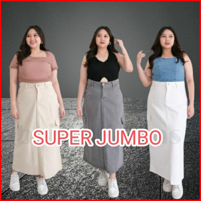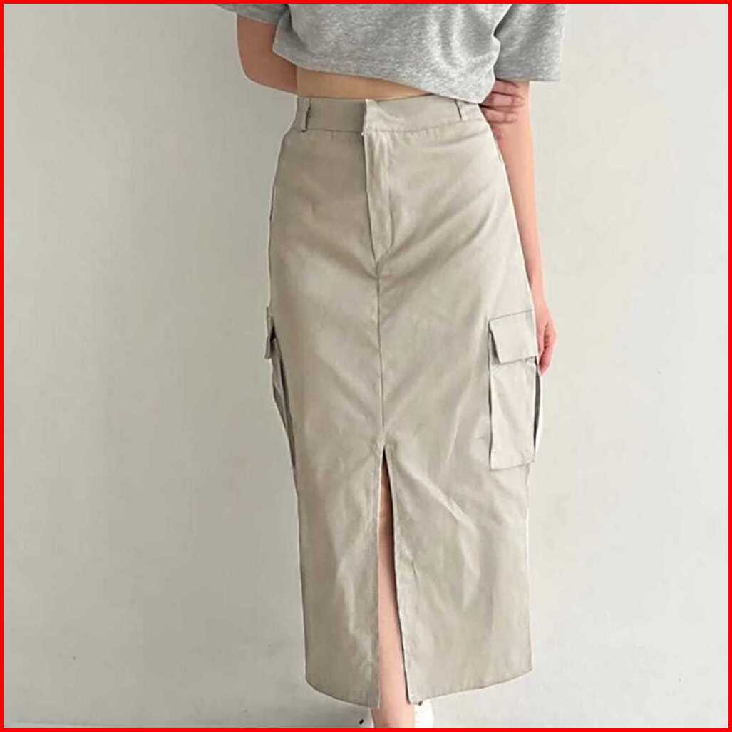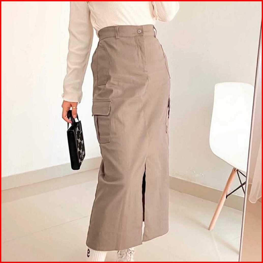 Omedistore Rok Cargo Rok Cargo Panjang Wanita Twill Combed Super Jumbo Belah Depan Rok Korean Style Kekinian