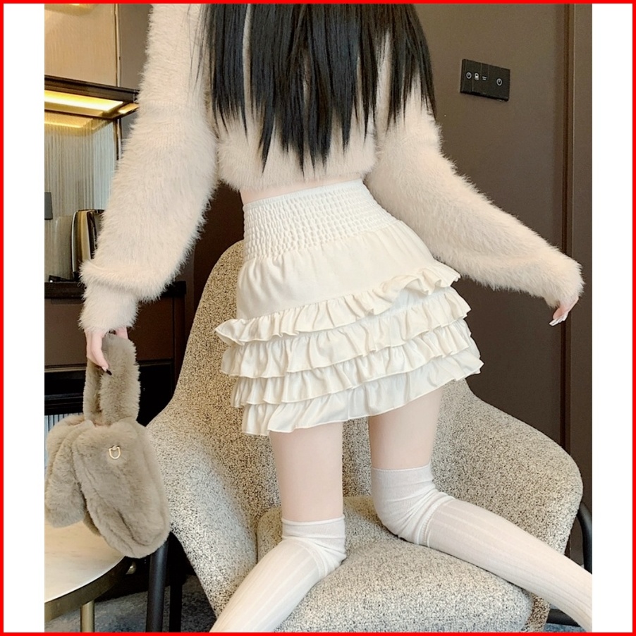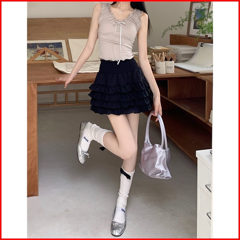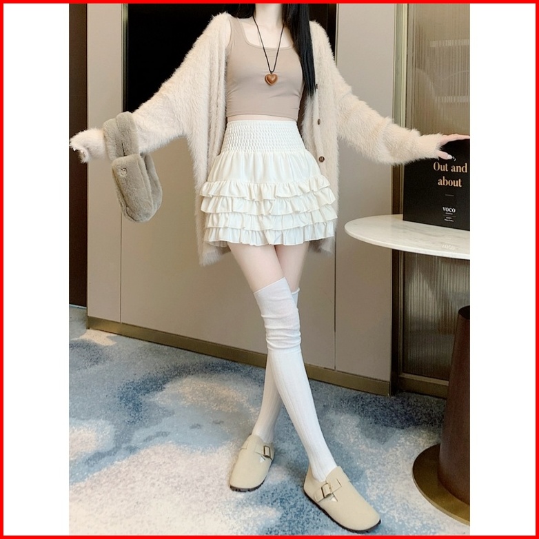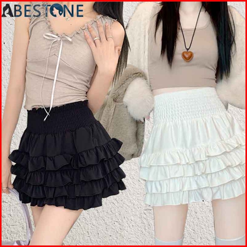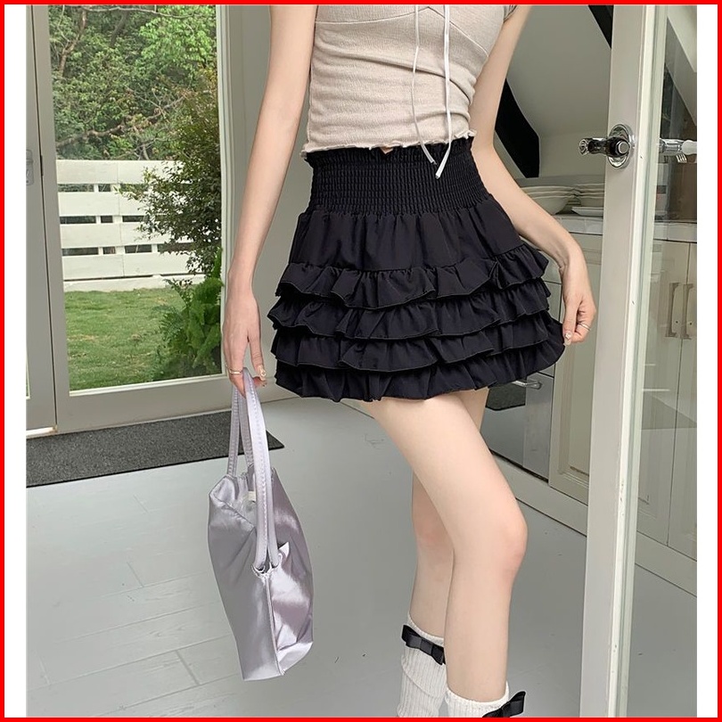 Rok Mini Tinggi Pinggang Gaya Korea Dengan Ruffle Rok Mini A-line Rok Plisket