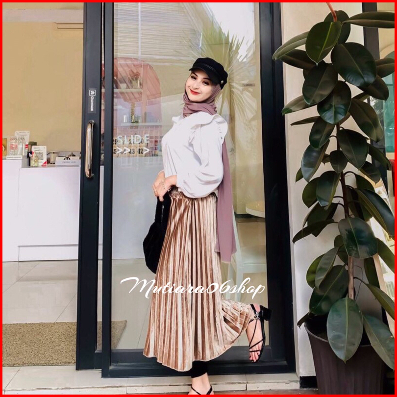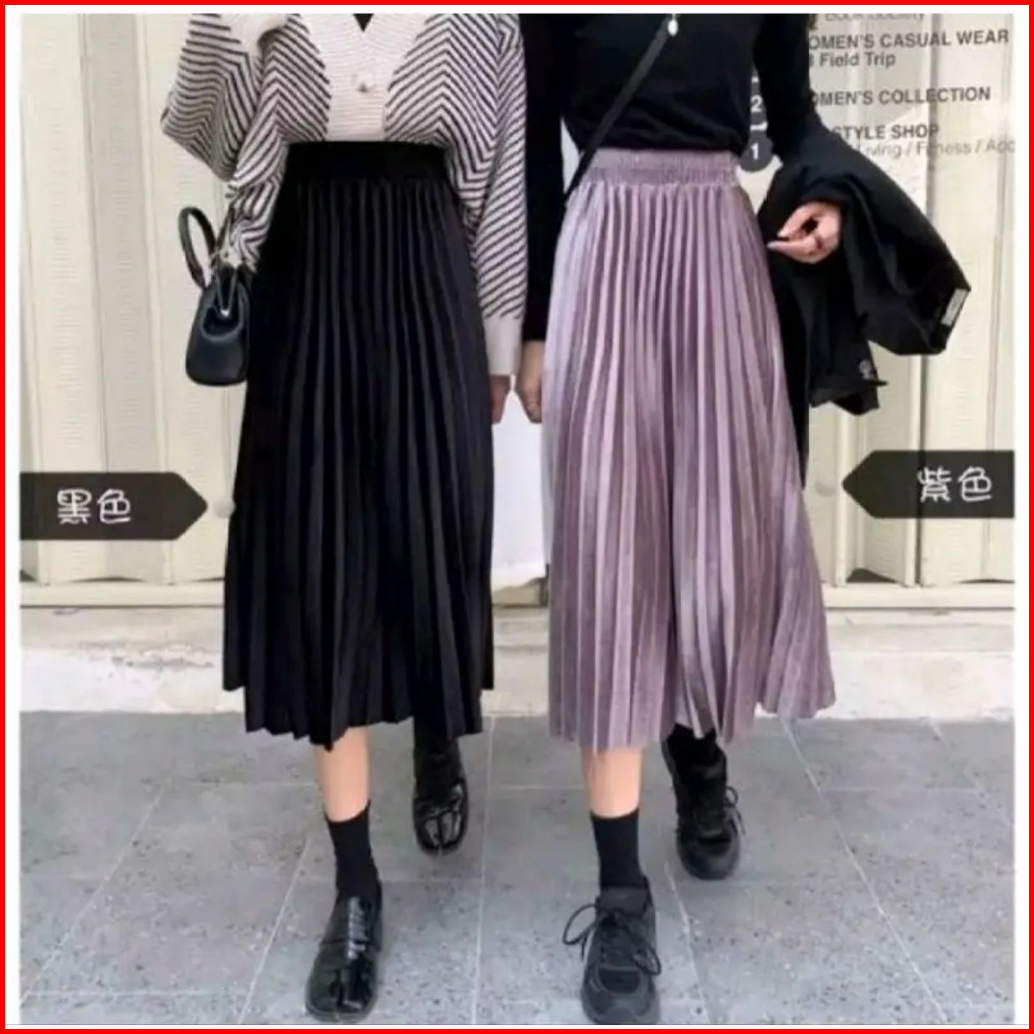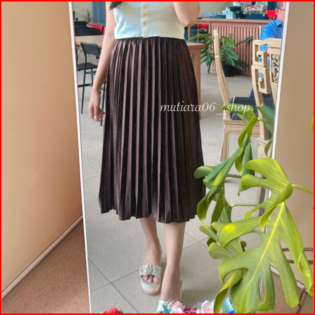 Rok Plisket Midi 7 8 Bludru Velvet Premium