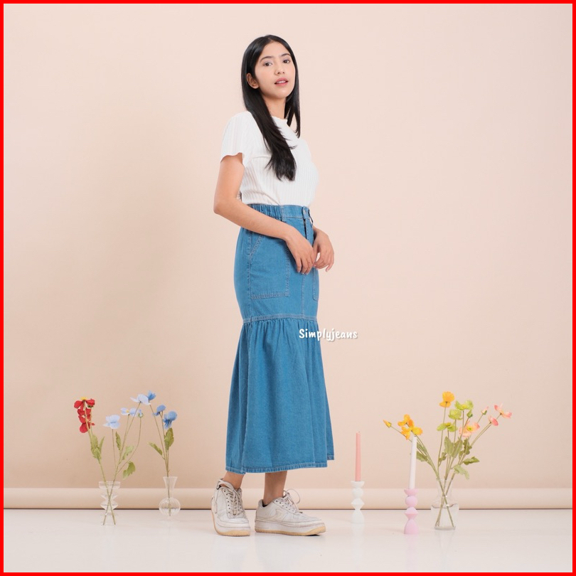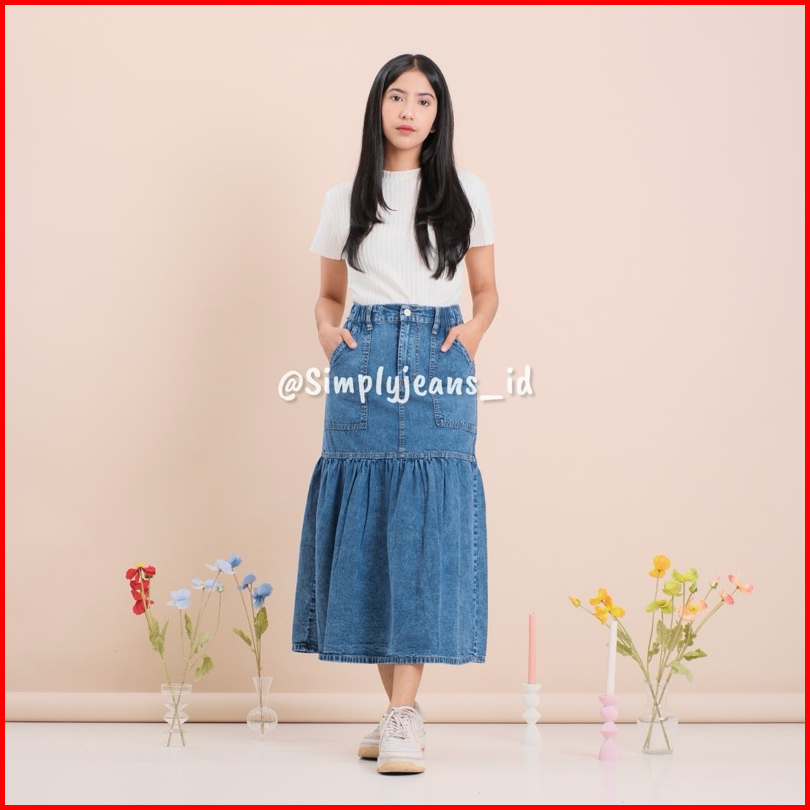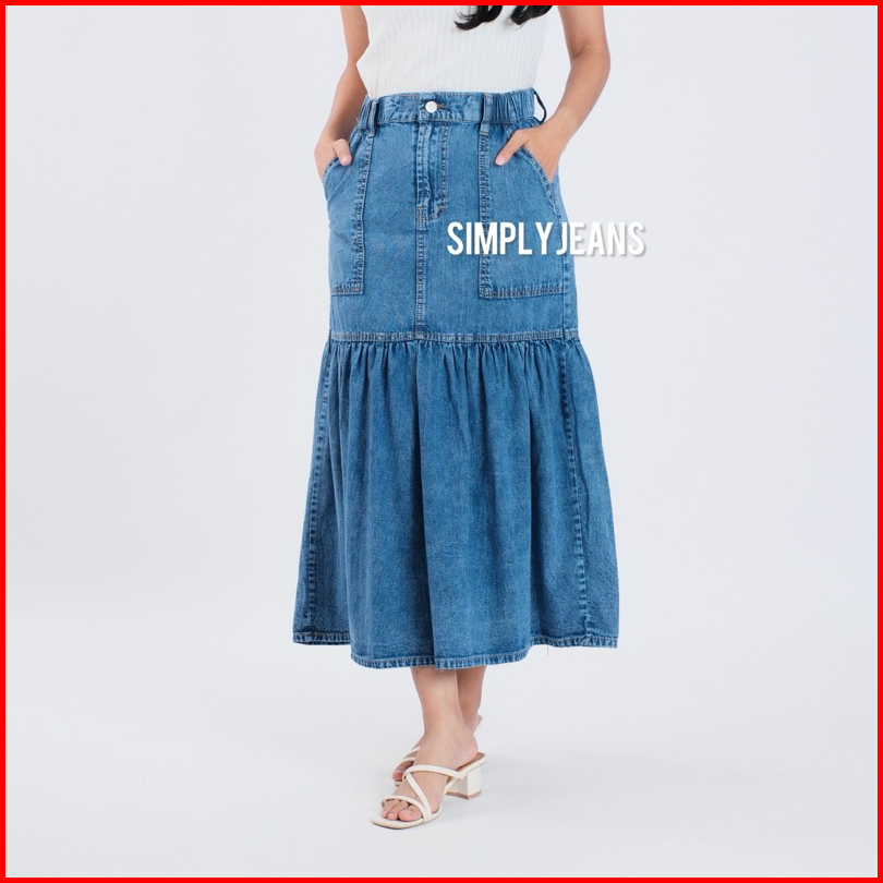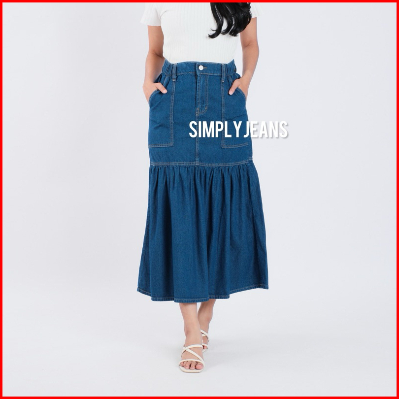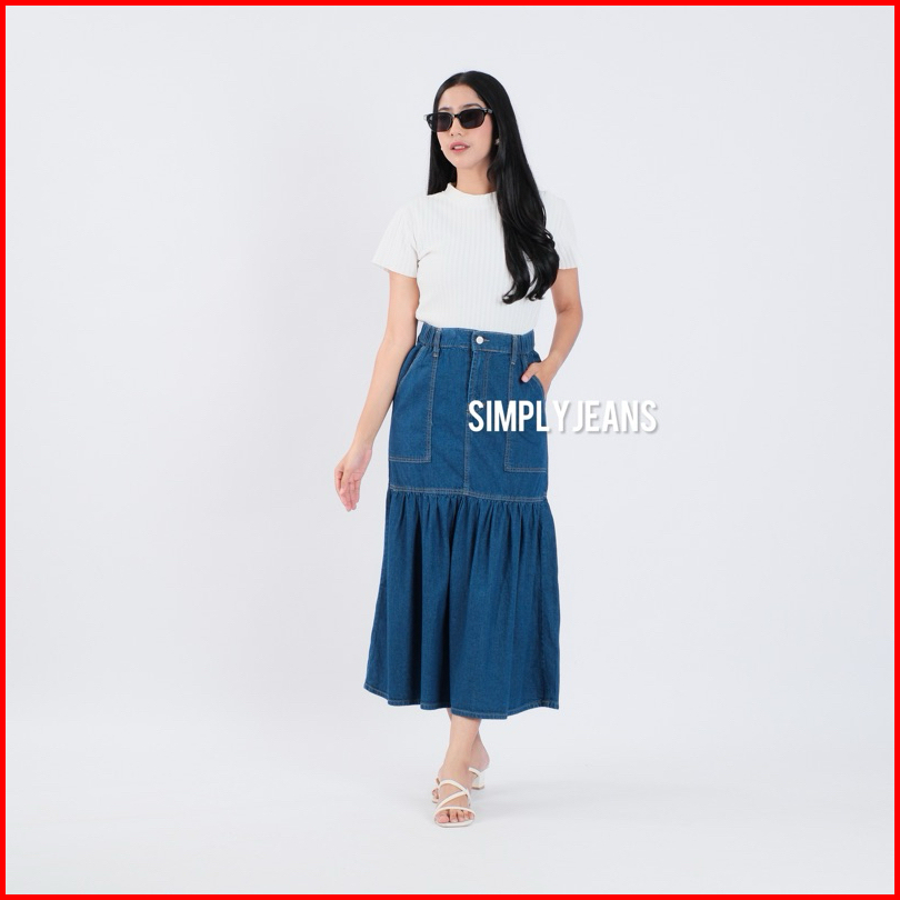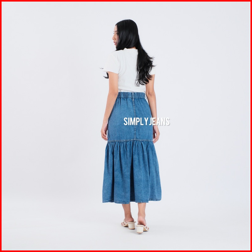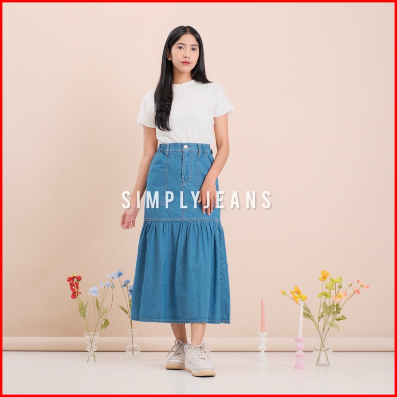 Simplyjeans - Laura Rok Jeans Mayung Wanita A- Line Skirt Panjang Pinggang Highwaist Premium