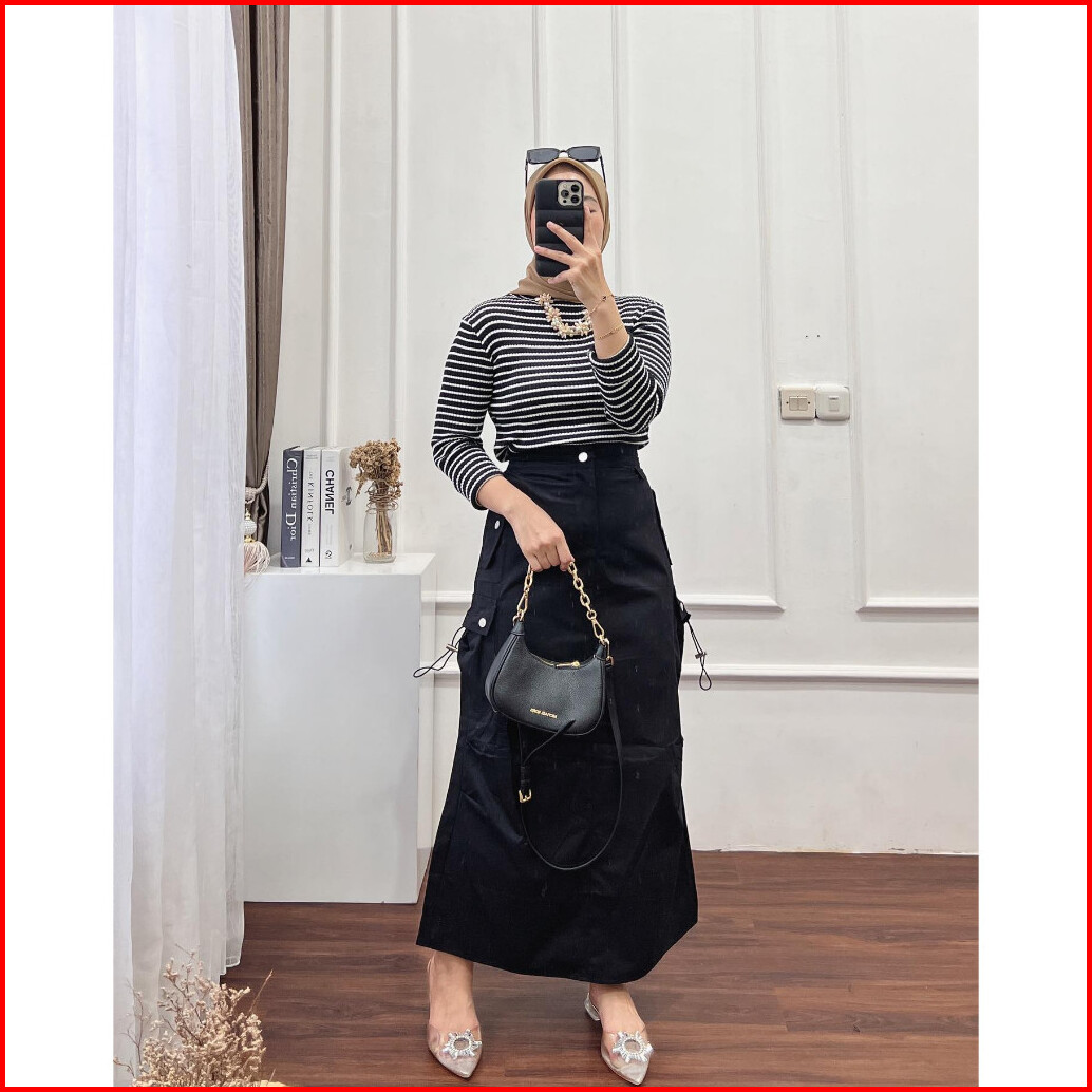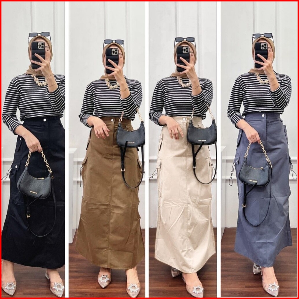 Rok Cargo Span Skirt Wrap Katun Drill Lulu Viral Kekinian Korean Style
