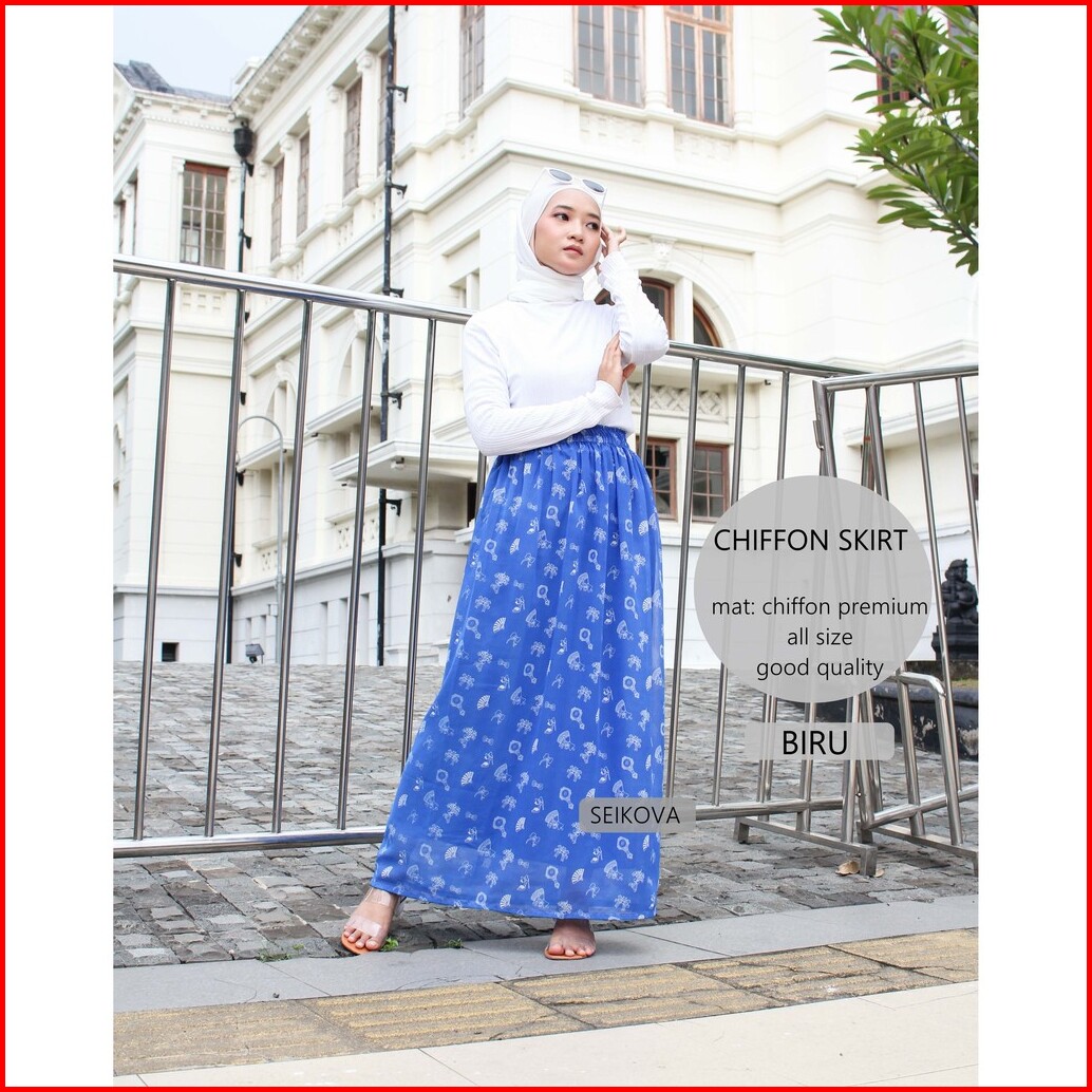 Rok Panjang Motif - Rok Sifon Motif - Rok Pinggang Karet - Rok Motif Biru - Rok Vintage - Rok Remaja - Rok Korean Style